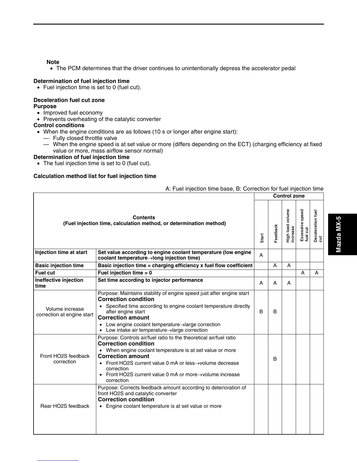 Fuel cut Fuel injection time = 0 AA