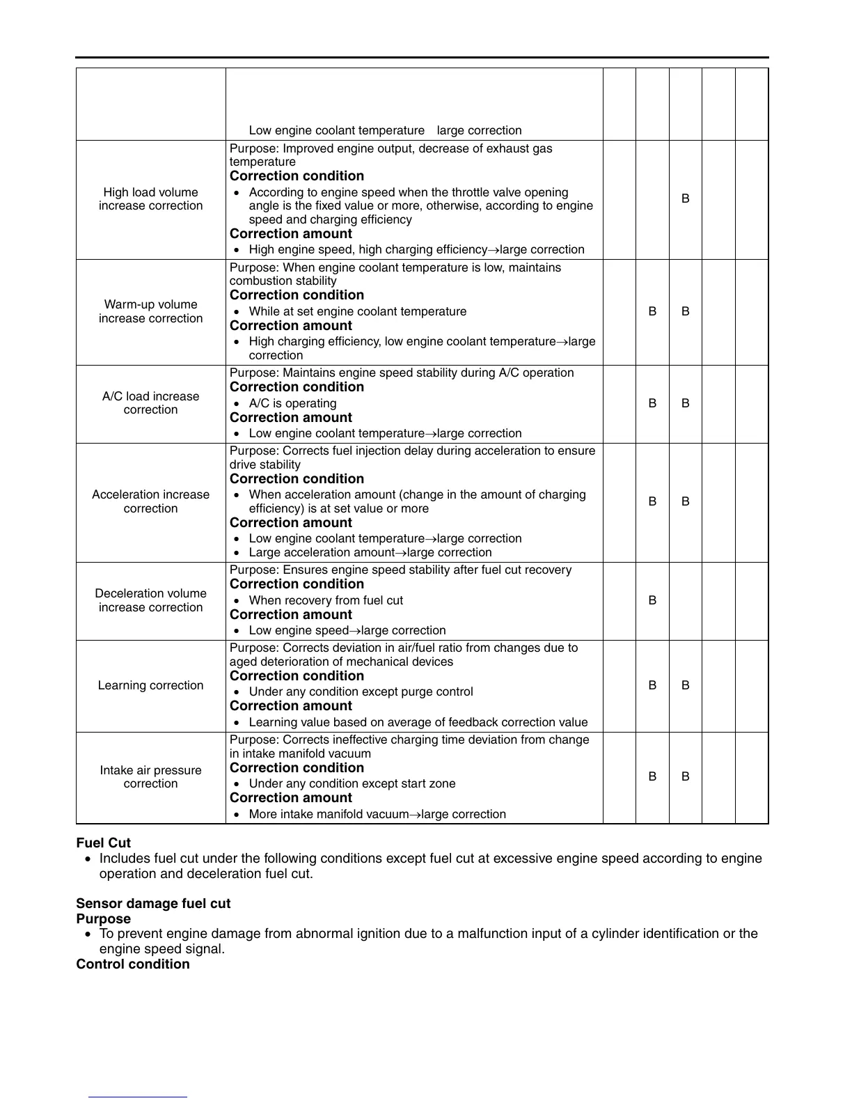 • Includes fuel cut under the following conditions except fuel cut at excessive engine speed according to engine