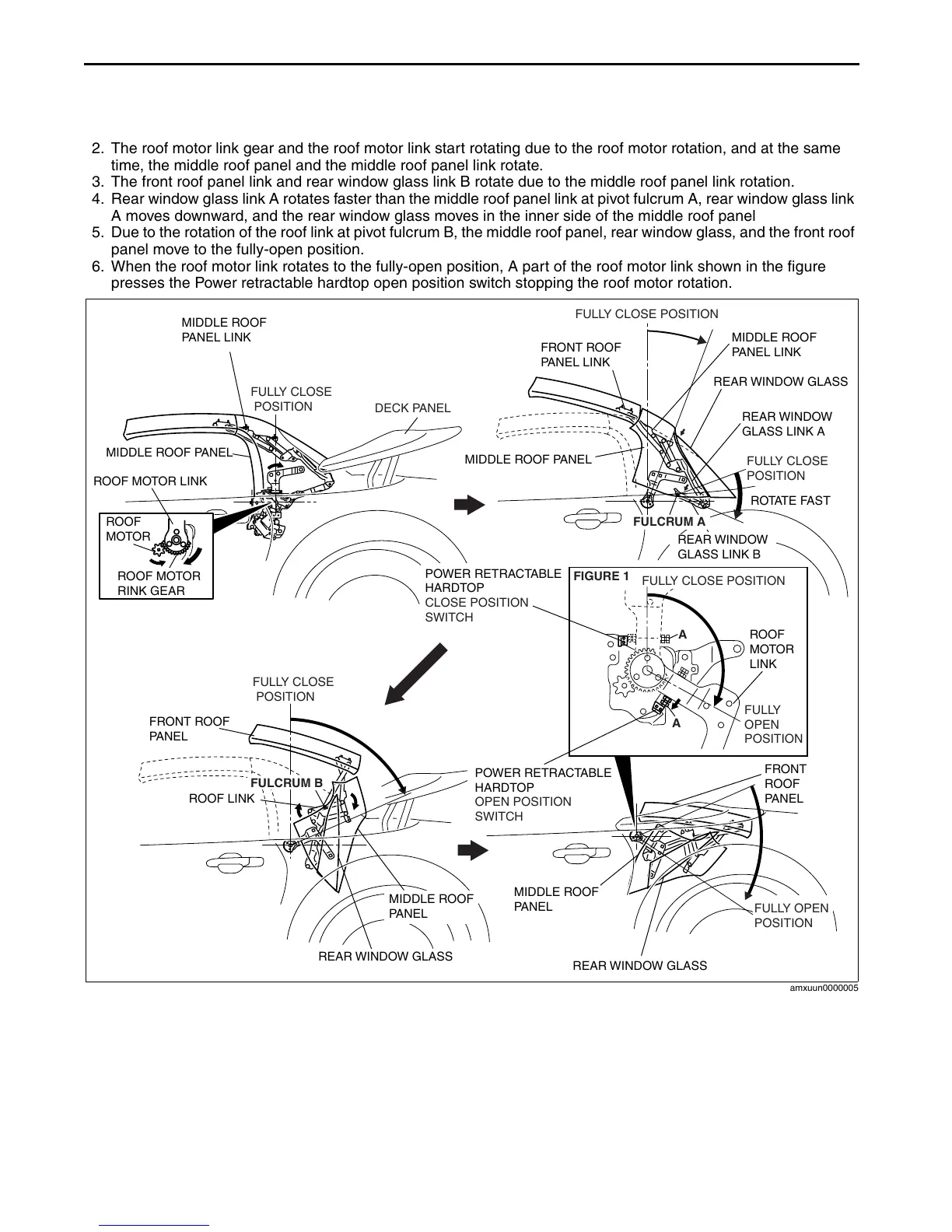 1. After the deck panel is fully opened, the roof motor starts rotating based on the operation signal from the Power