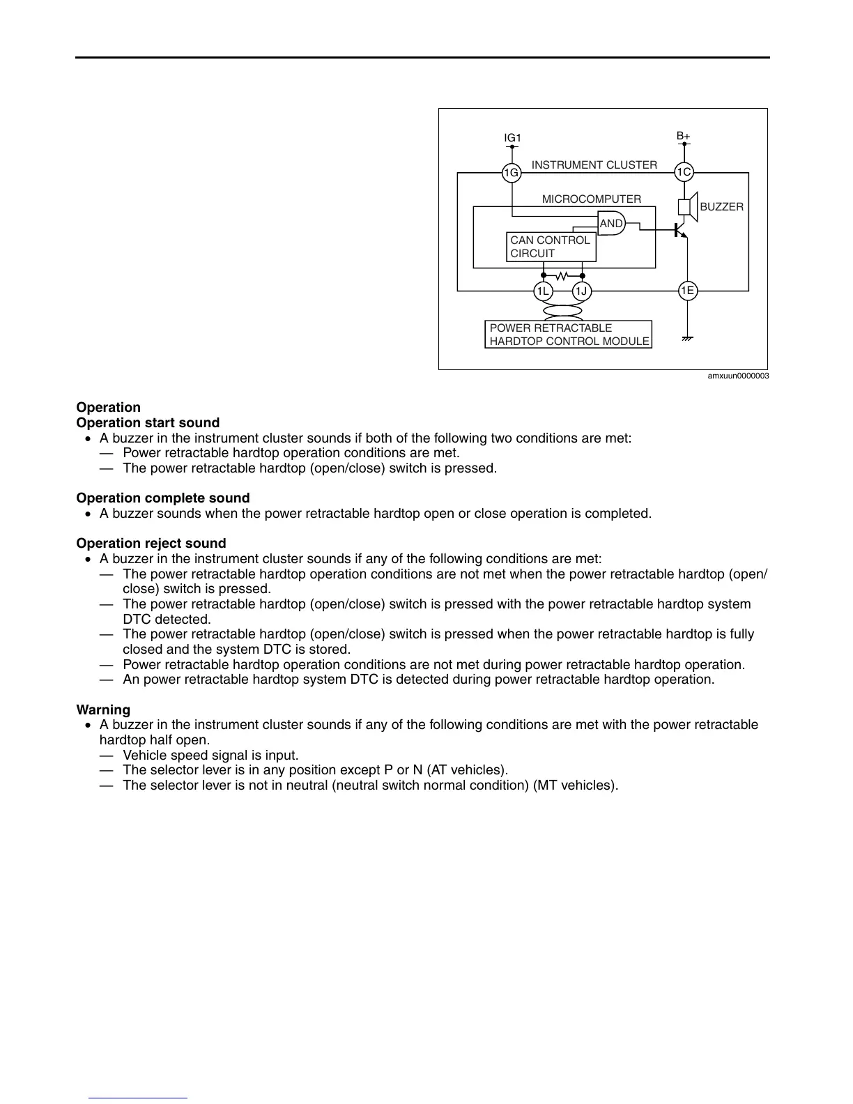 • A buzzer sounds when the power retractable hardtop open or close operation is completed.