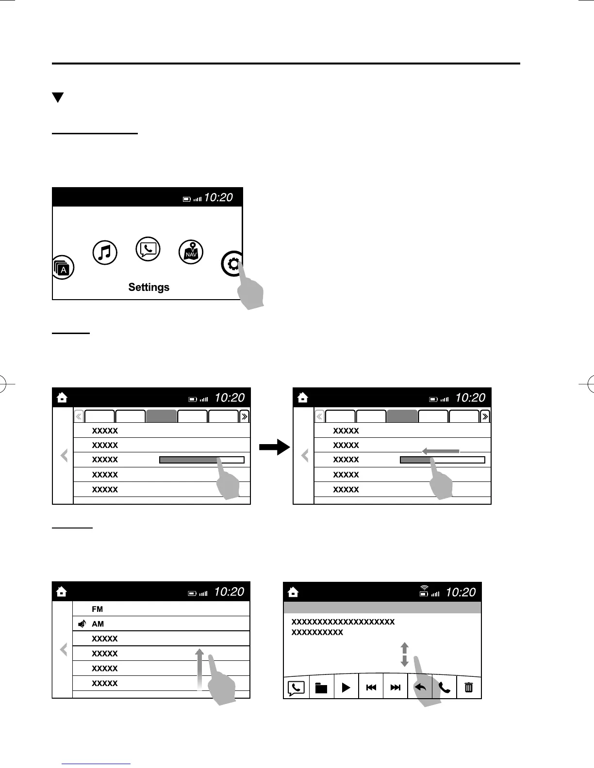 1. Touch the setting item displaying a slider bar.