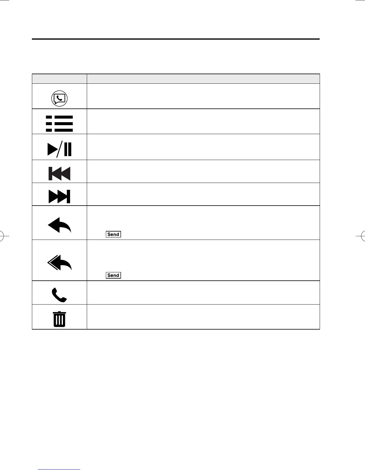 The following icons are displayed in the lower part of the details on the message. Icons