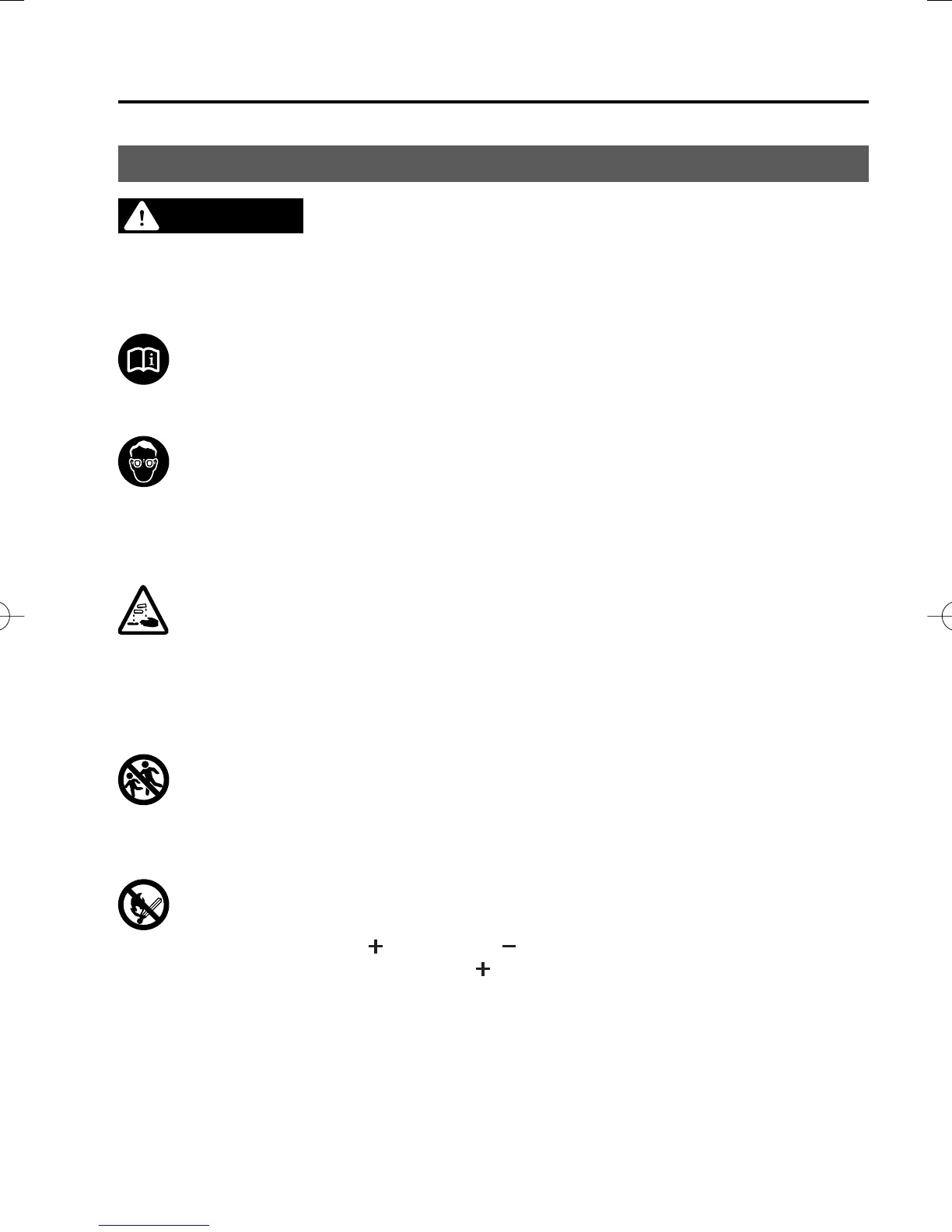 Keep ames and sparks away from open battery cells and do not allow metal