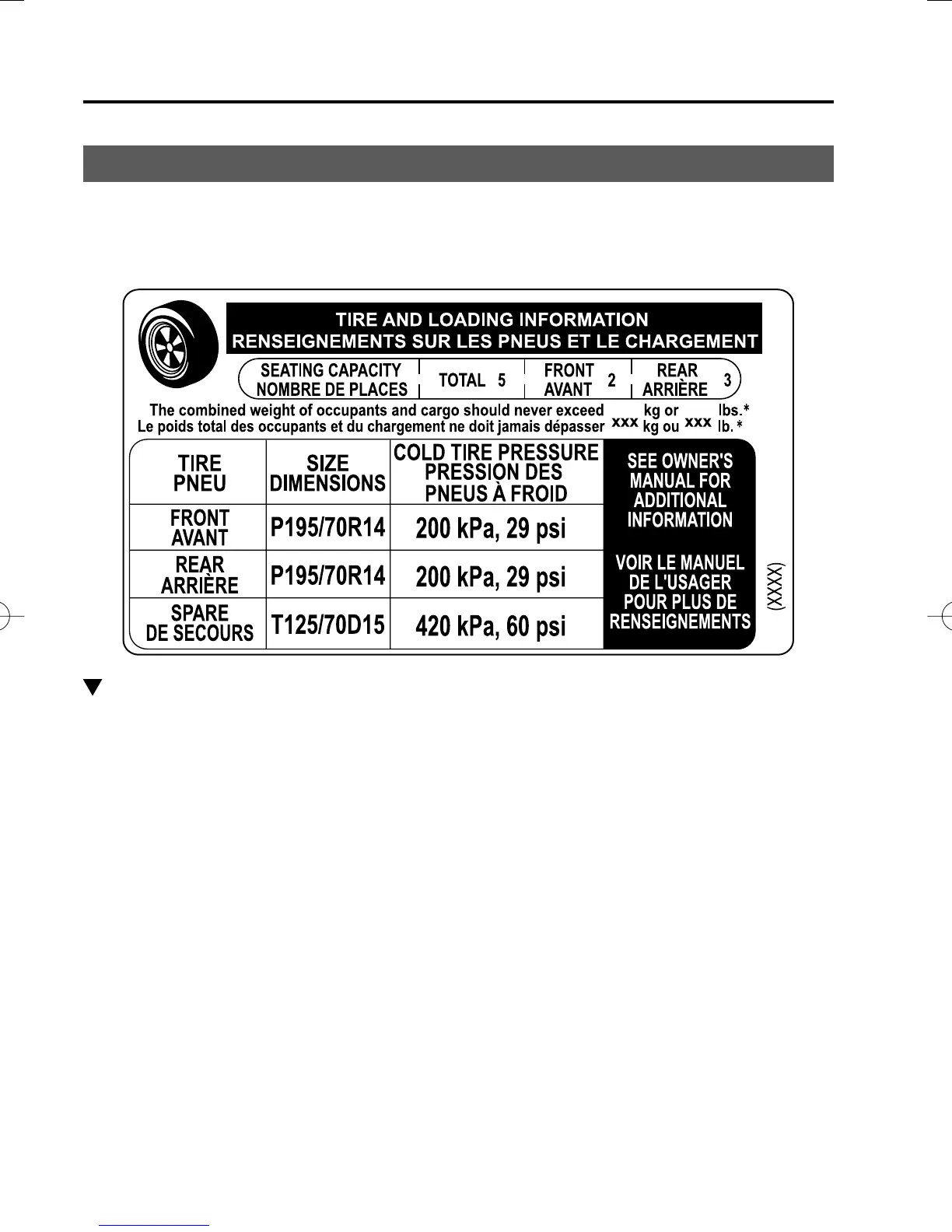 On the tire label you will fi nd the recommended tire infl ation pressure in both kPa and