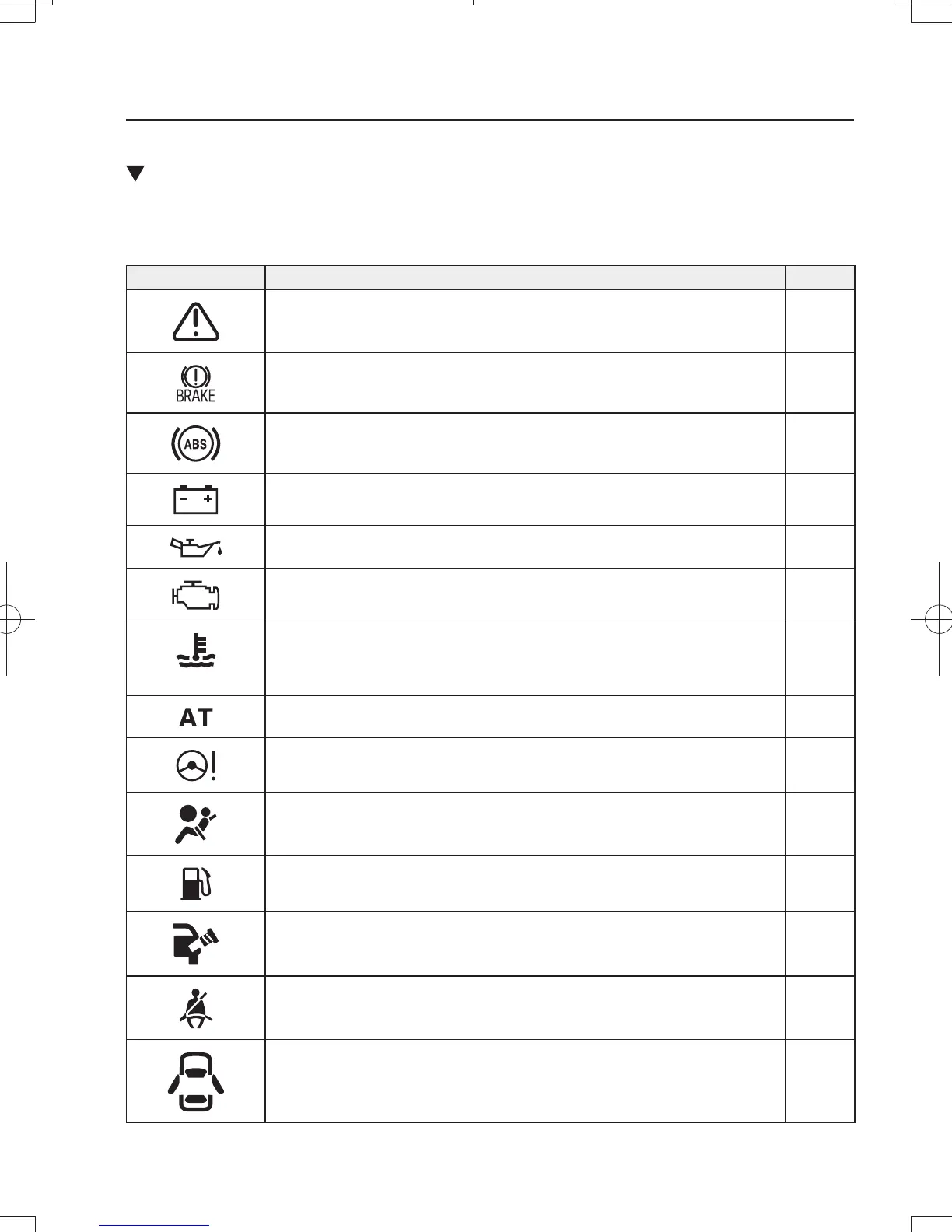 Air Bag/Front Seat Belt Pretensioner System Warning Light