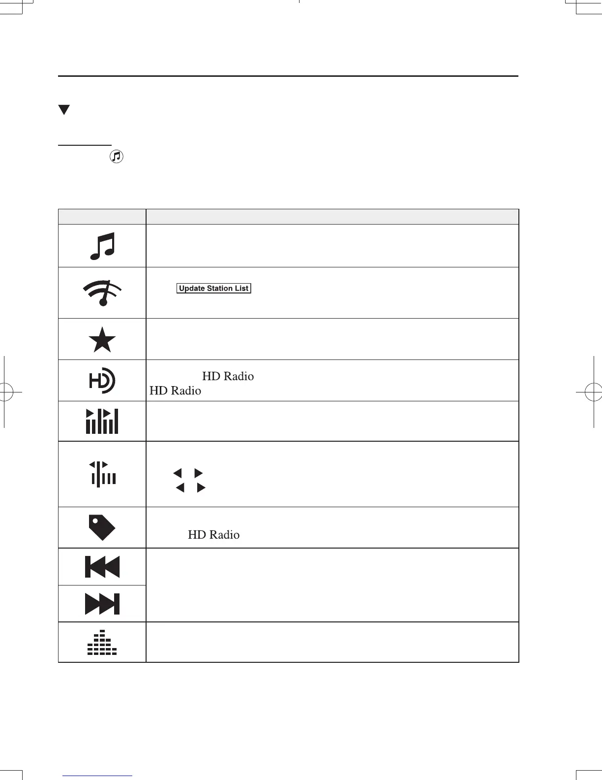 the desired radio, the following icons are indicated in the lower part of the center display.