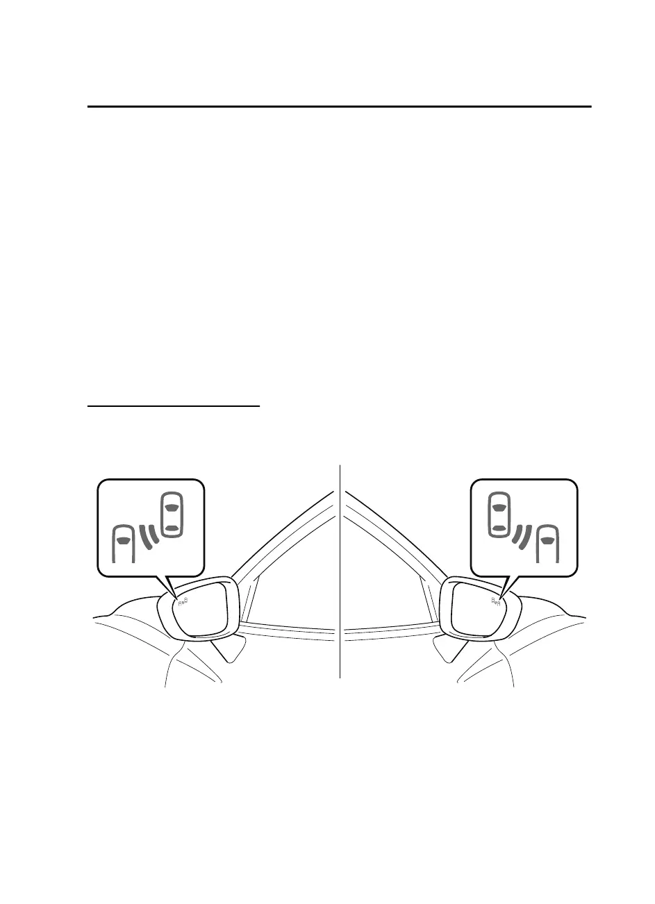 The BSM warning indicator lights are equipped on the left and right door mirrors. The