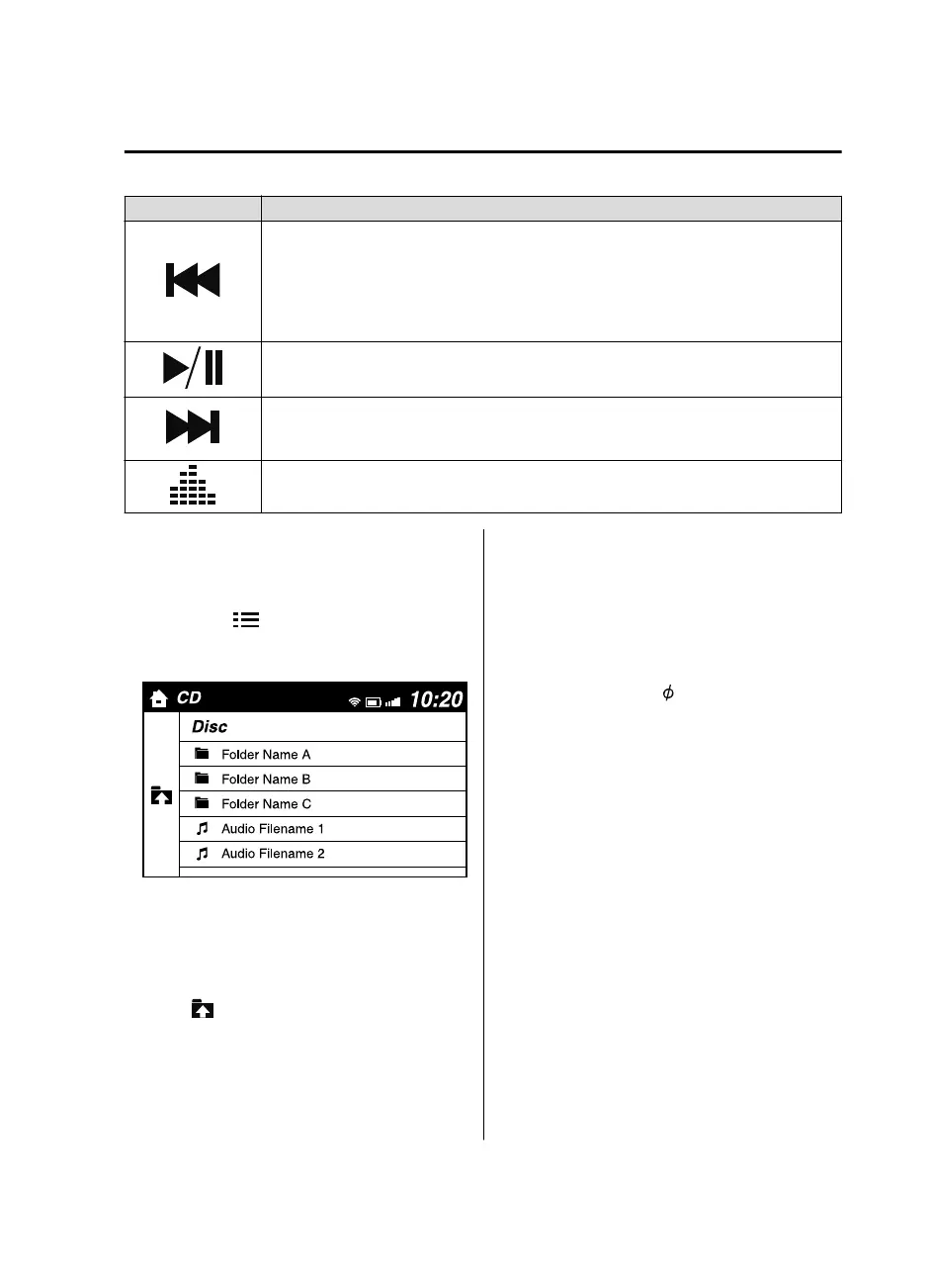 Plays a CD. When selected again, playback is temporarily stopped.