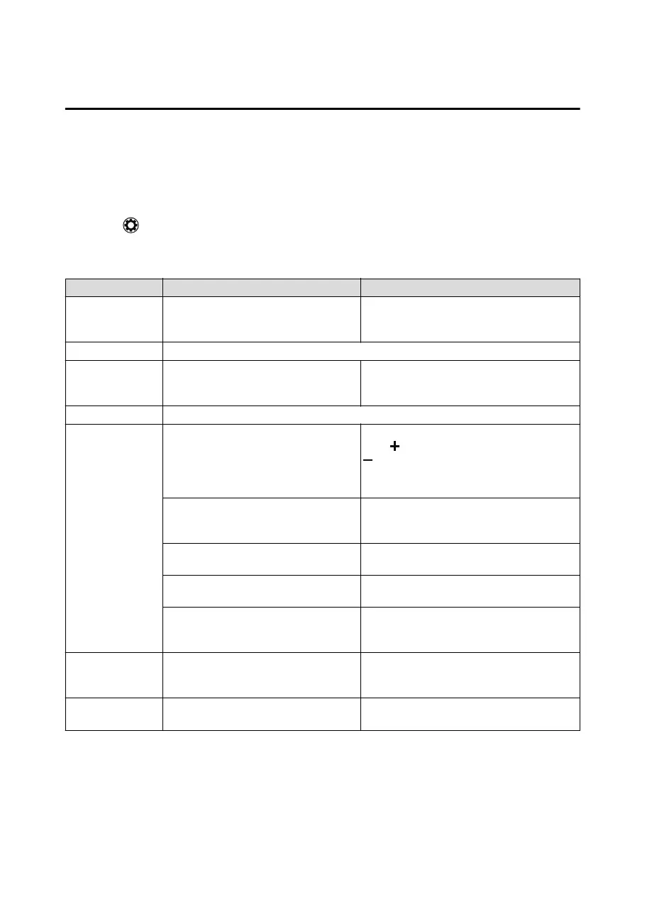 You can customize settings in the setup display as follows: