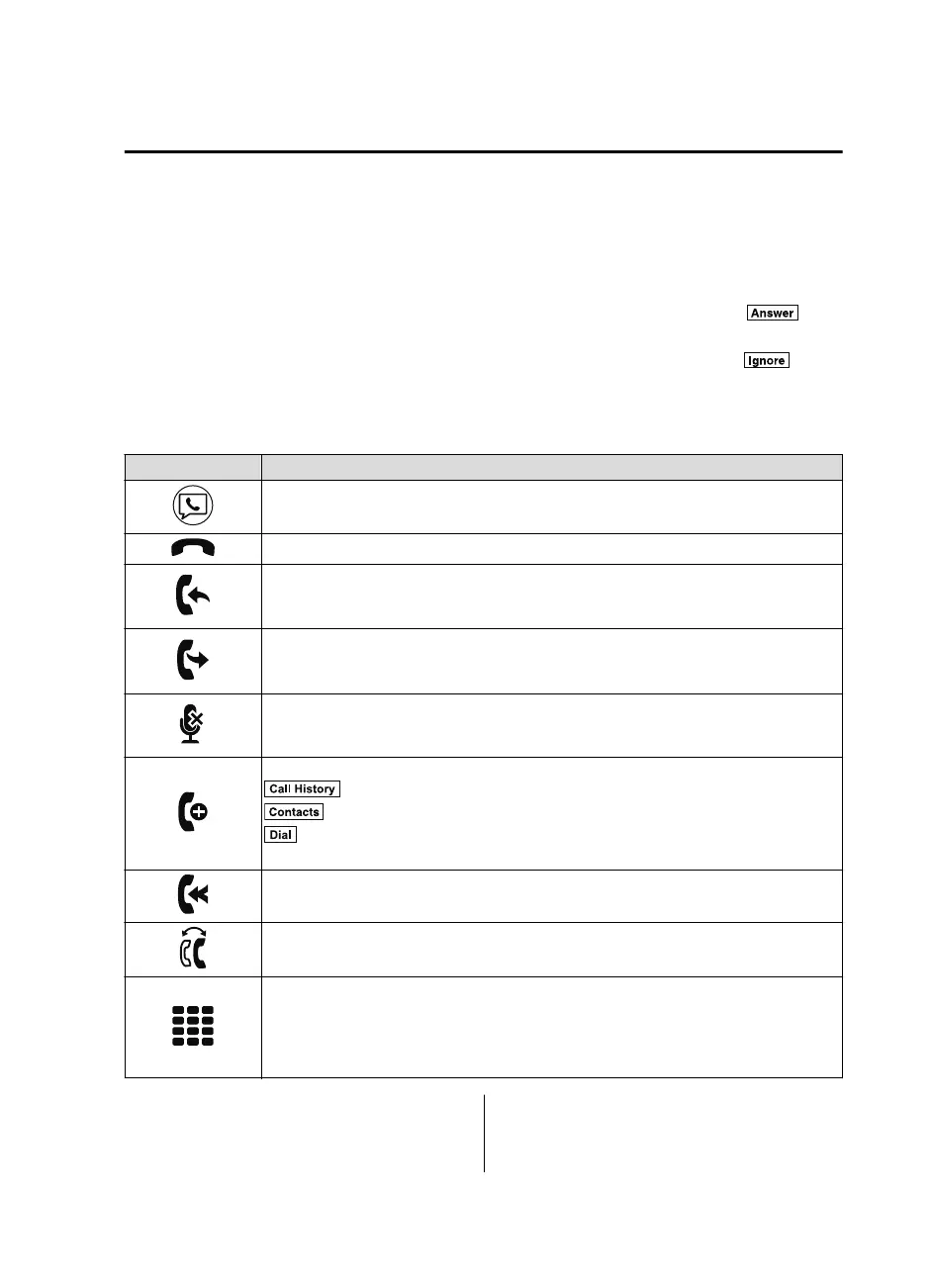 The following icons are displayed on the screen during a call. Icons which can be used