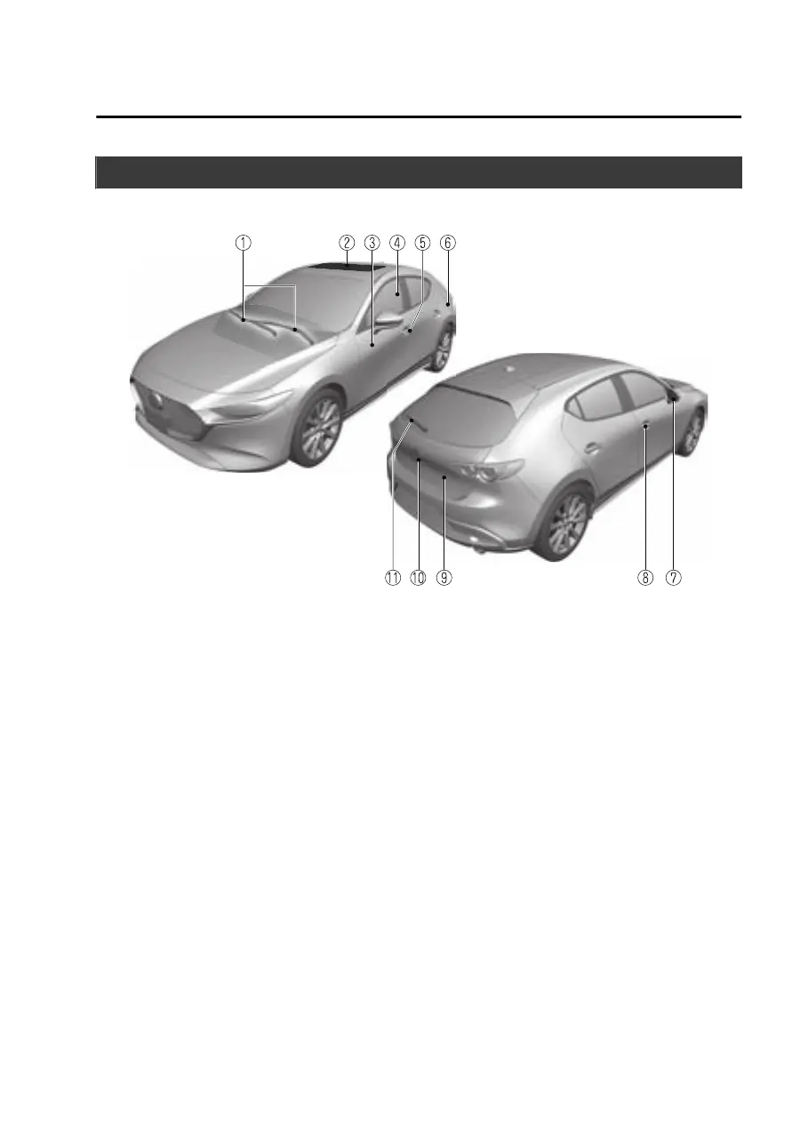 ⑪ Rear window wiper blade......................................................................................page 6-24