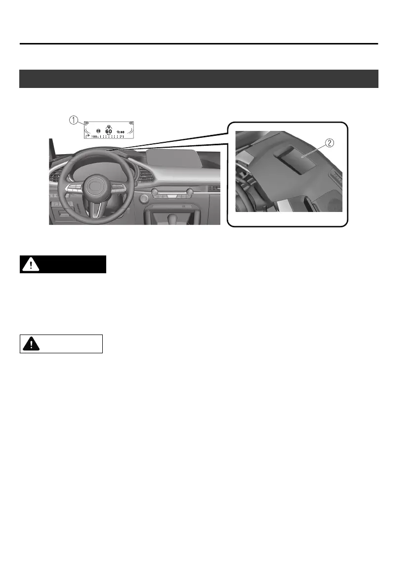 Do not place objects or apply stickers above the active driving display or to the