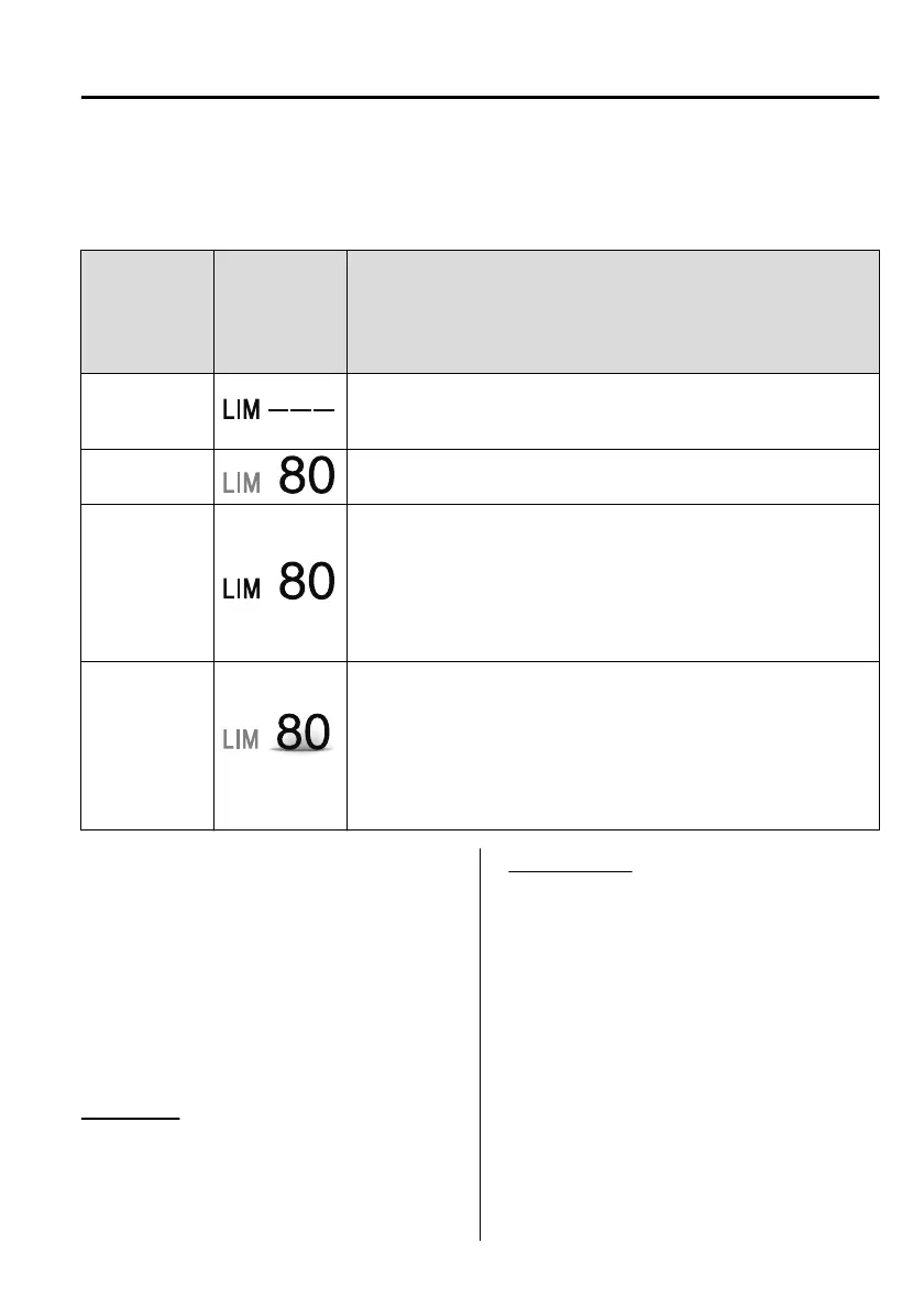 Displays when the speed limiter switch is operated and the system