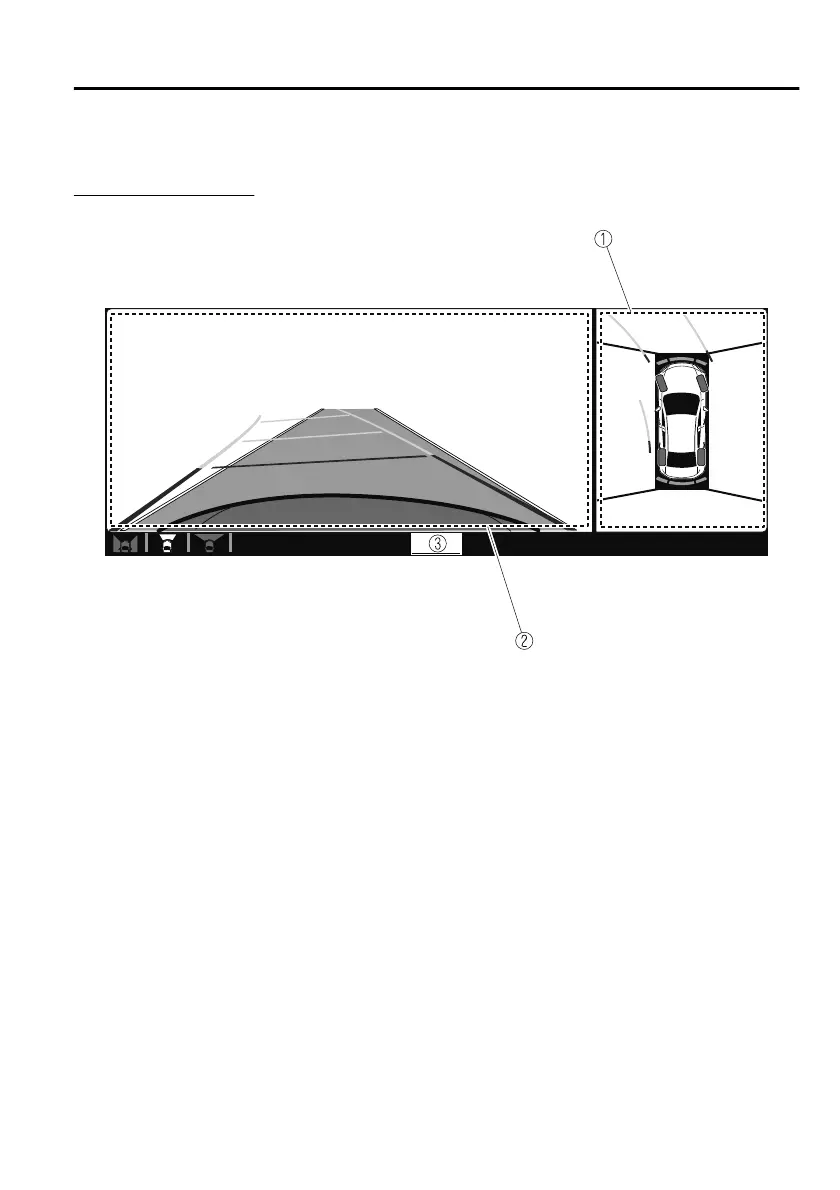 Displays the image of the area around the vehicle and the vehicle front.