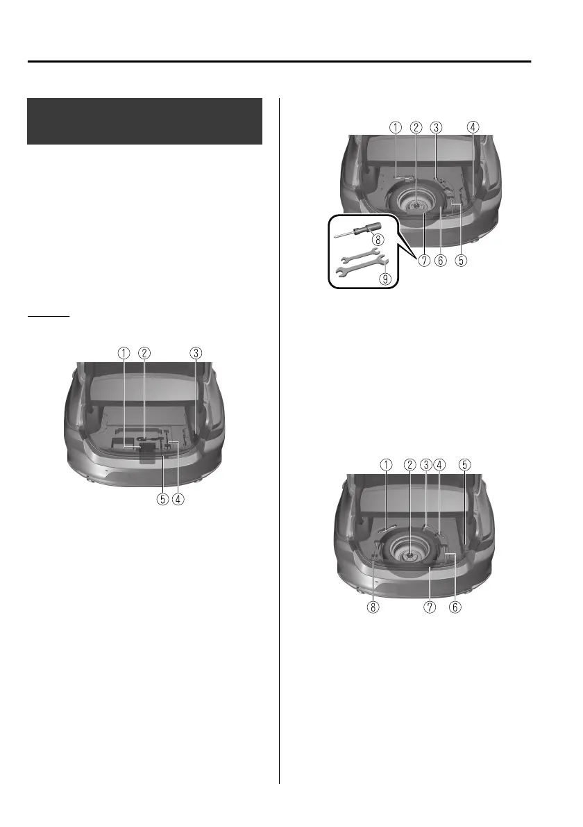Spare tyre and tools are stored in the