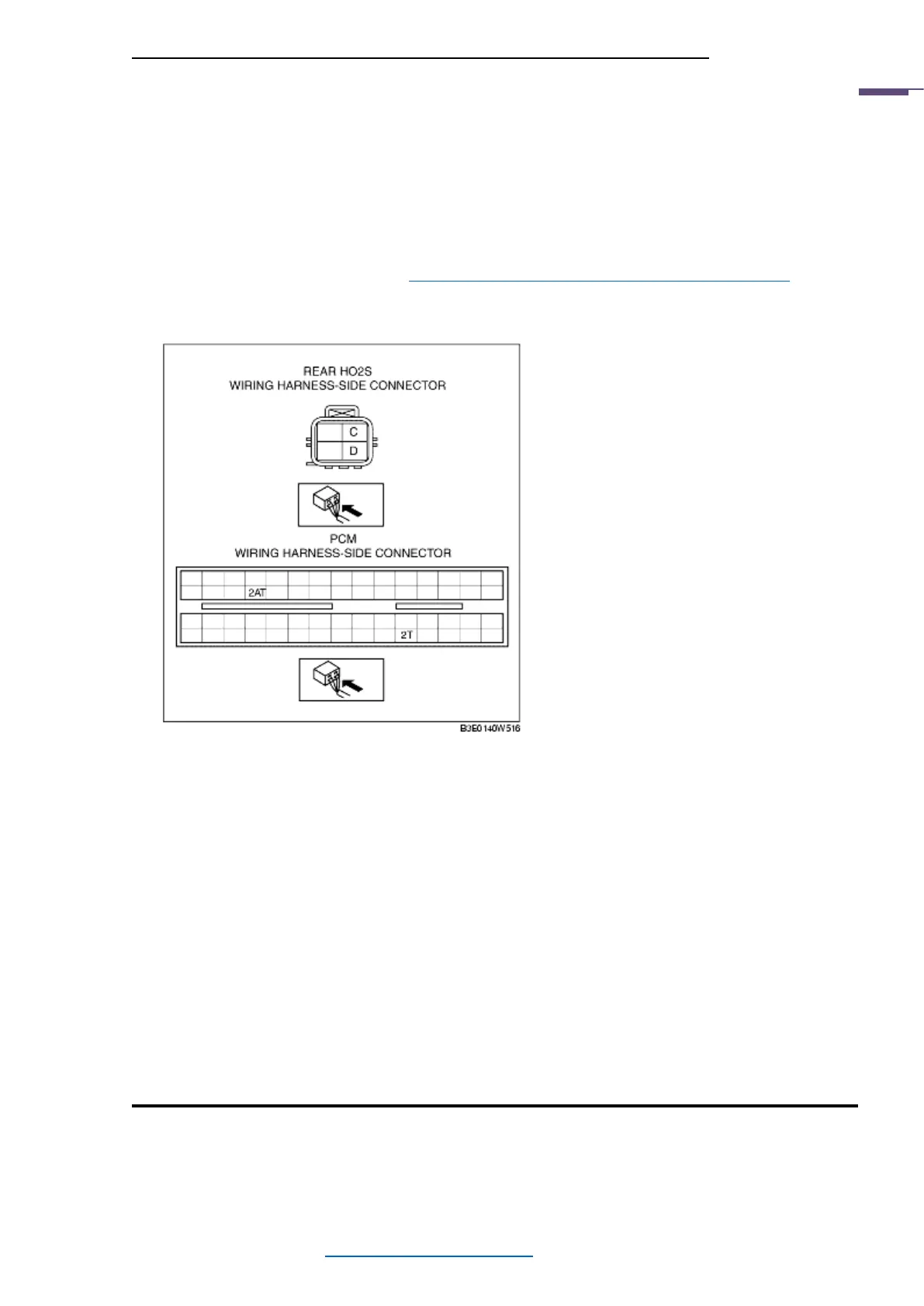 - Rear HO2S terminal C and PCM terminal 2T