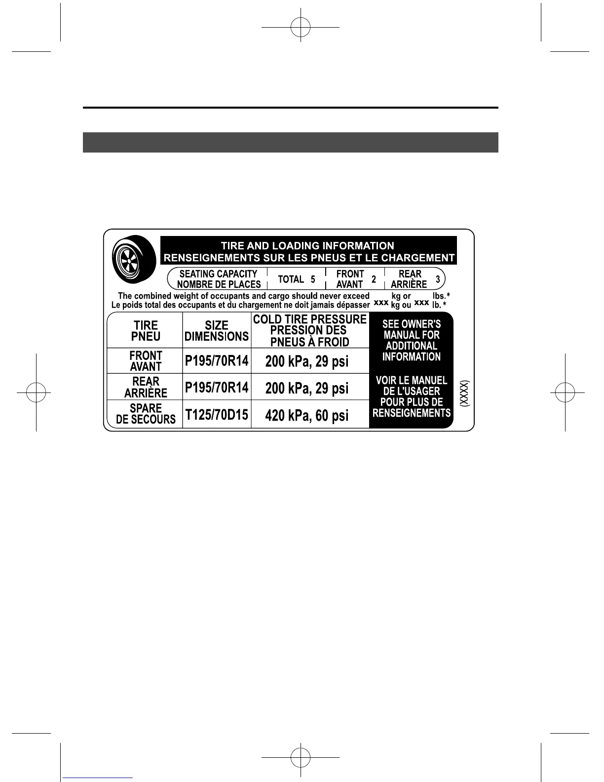 for the tires installed as original equipment on the vehicle. It is very imp ortant that the