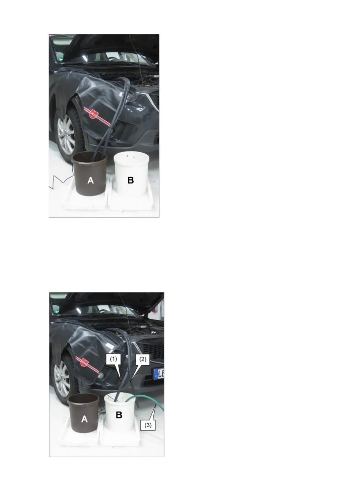 14. Place a hose (3) of your local fresh water supply into bucket (B).