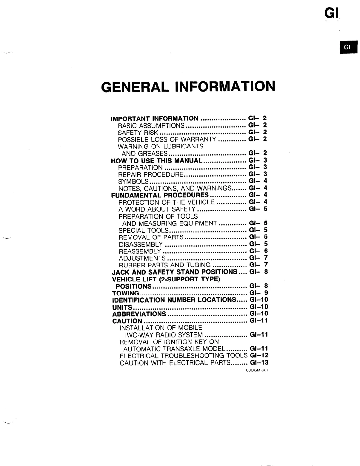 HOW TO USE THIS MANUAL.. .................. GI- 3