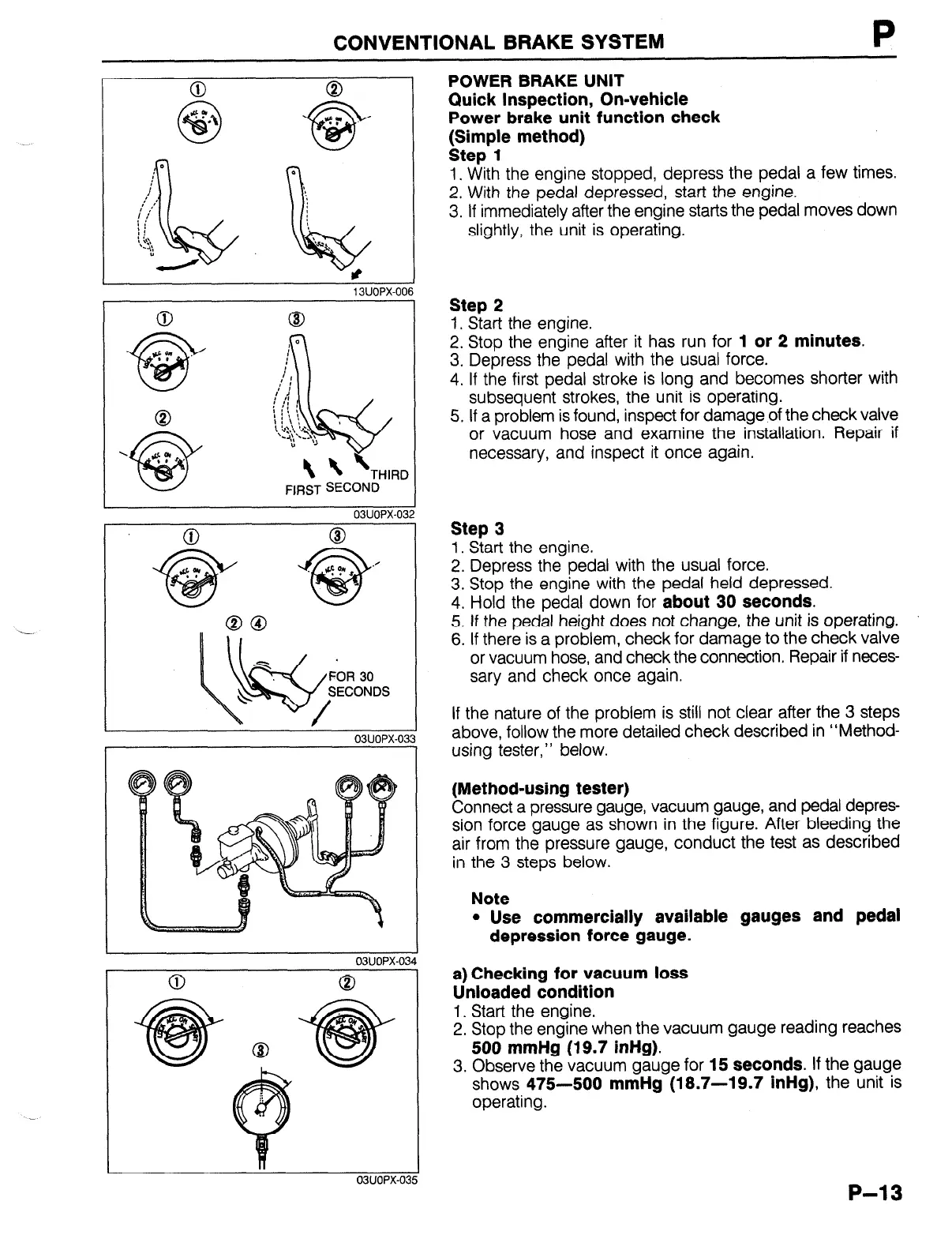 Connect a pressure gauge, vacuum gauge, and pedal depres-