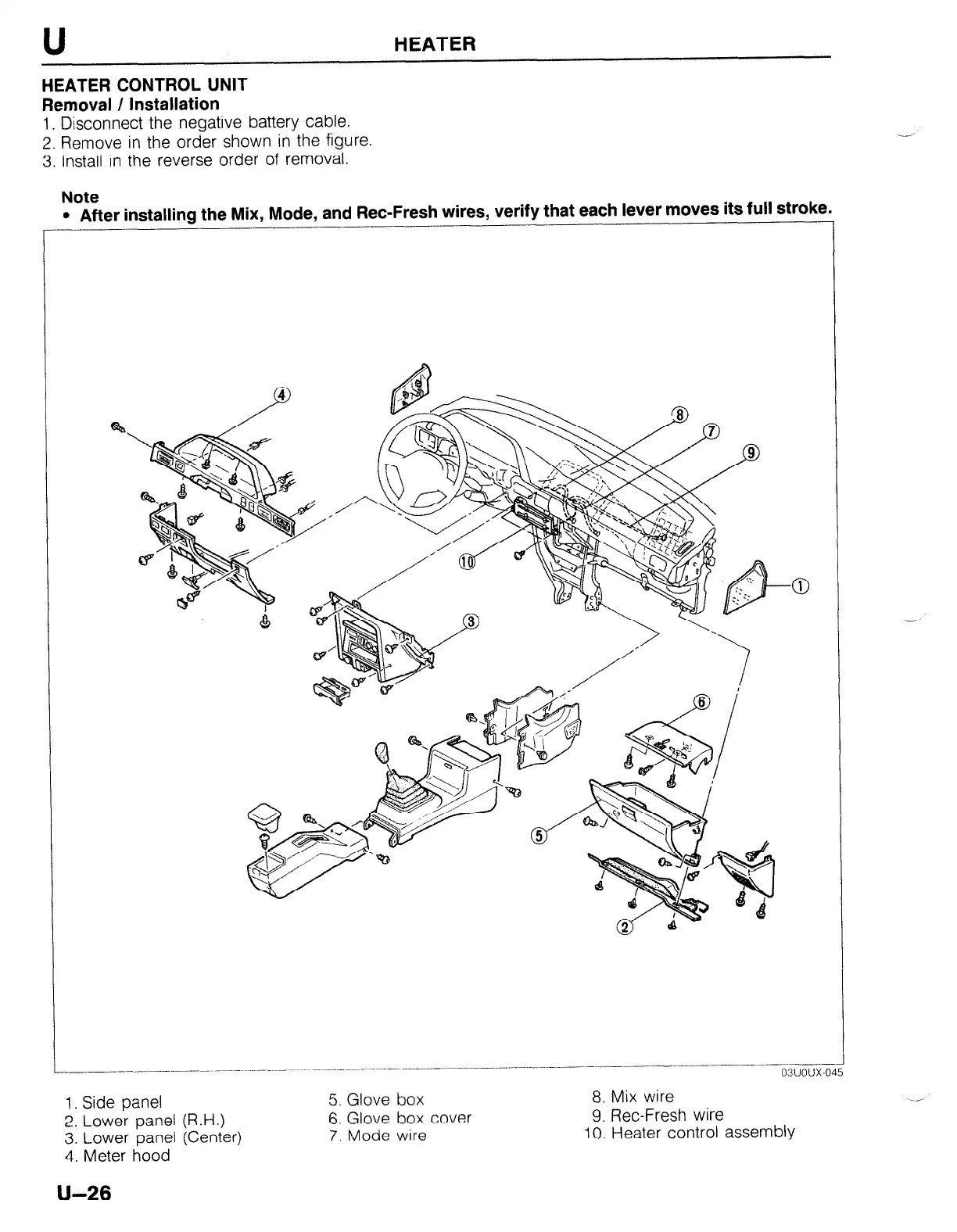 After installing the Mix, Mode, and Ret-Fresh wires. verifv that each lever moves its full stroke.