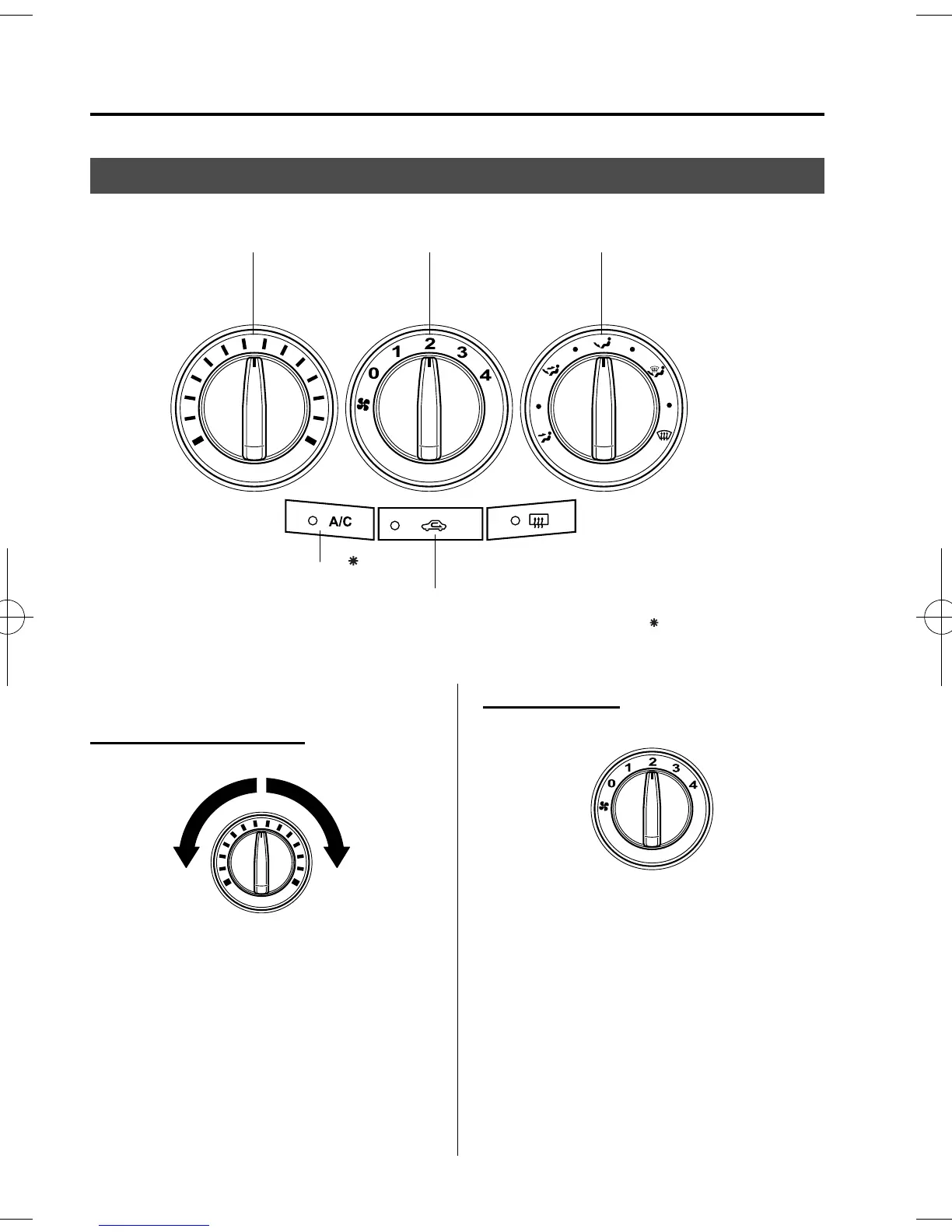 Temperature control dial Fan control dial Mode selector dial