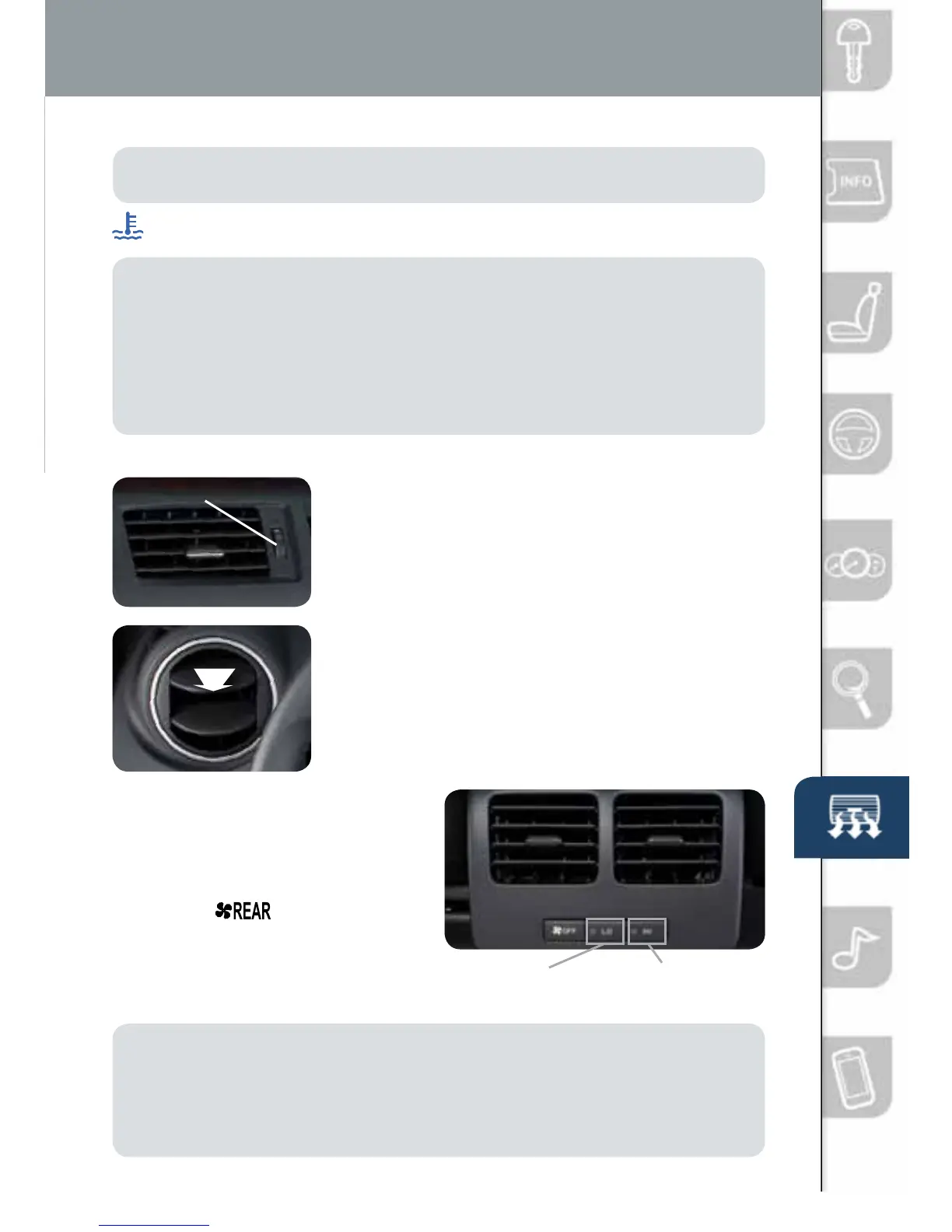 NOTE: Only cool or cold air (no heat) blows through the rear vents while