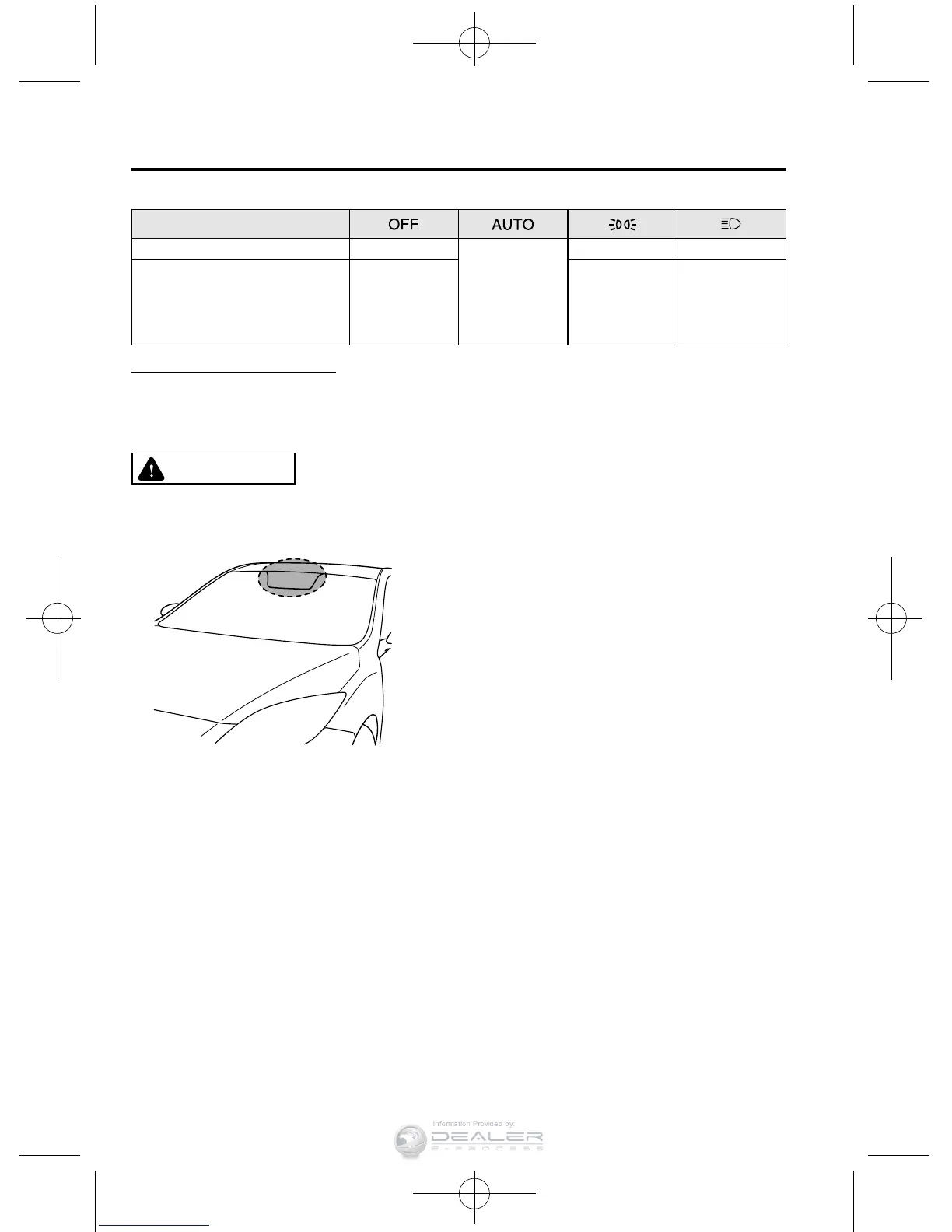 Ø Do not shade the light sensor by adhering a sticker or a label on the windshield.