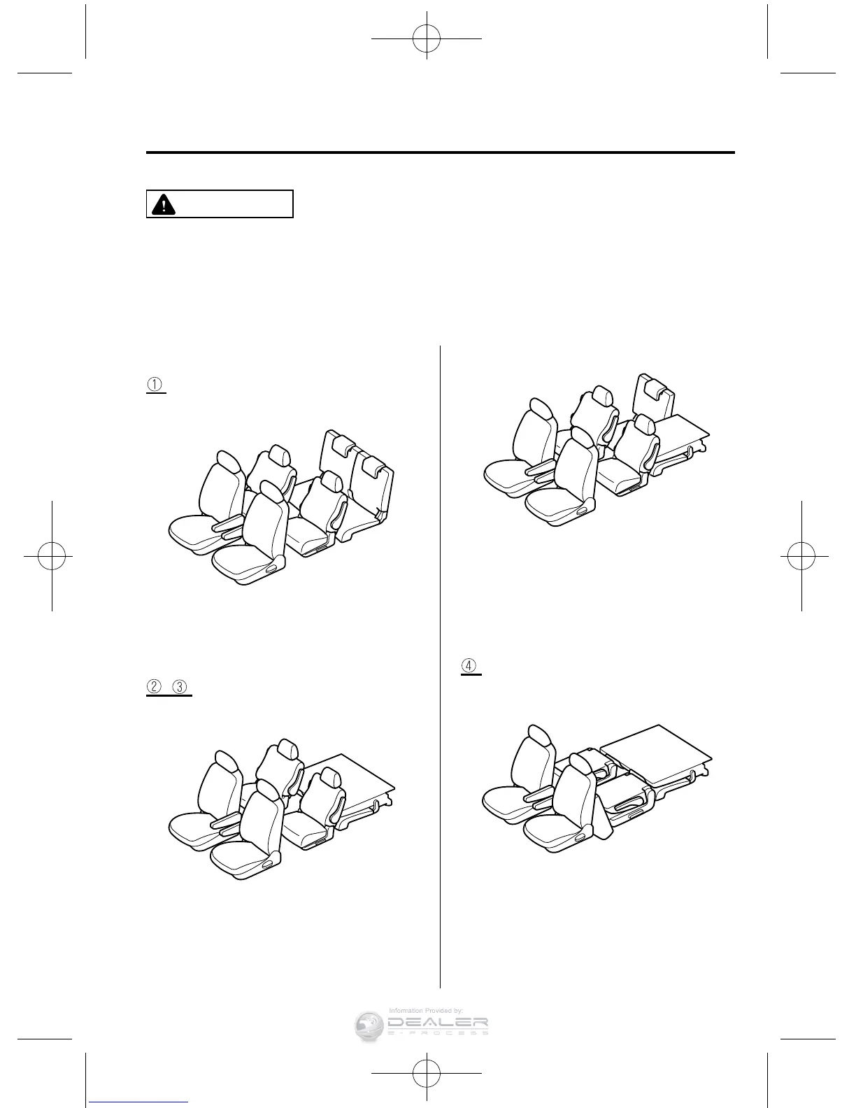 Ø Do not move around in the vehicle while the seats are folded down. A foot could
