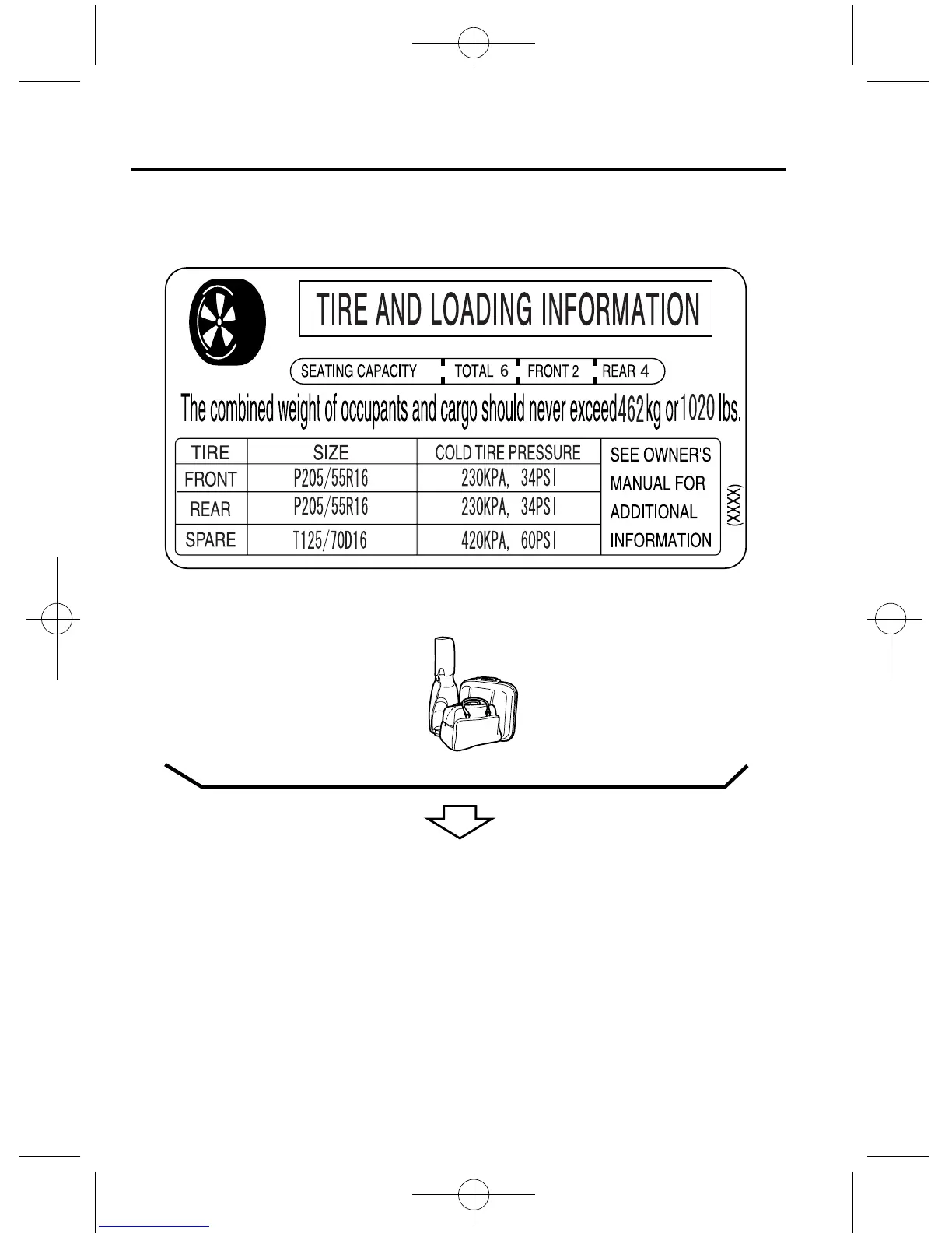 the “combination weight of occupants and cargo should never exceed” value on the tire