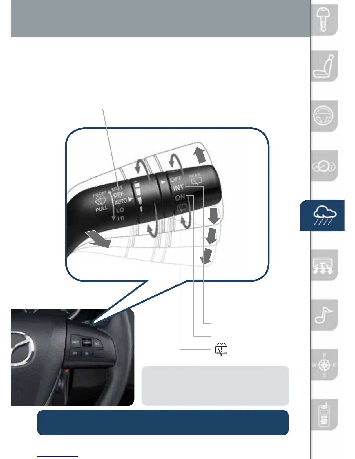 AUTO: The rain sensor senses the amount of rainfall and turns the wipers
