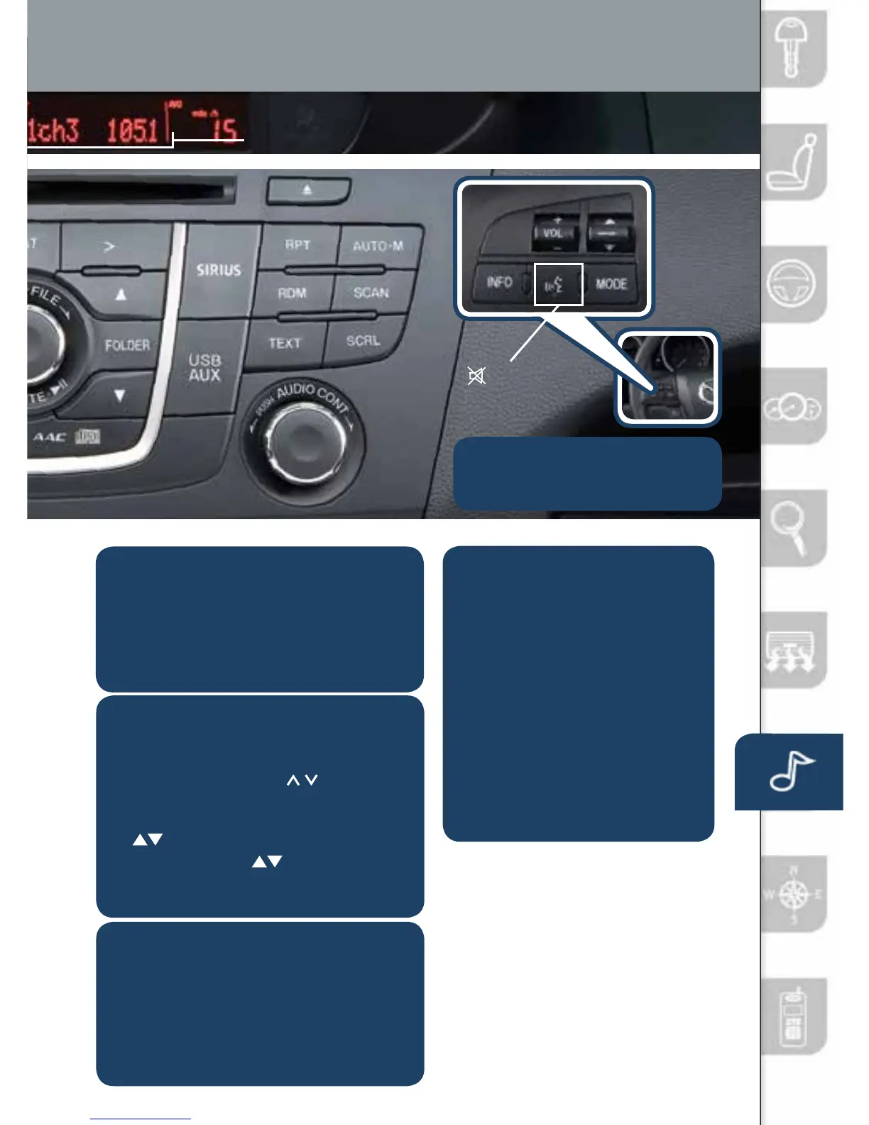 AM, CD, SIRIUS 1, 2, 3, andAUX.