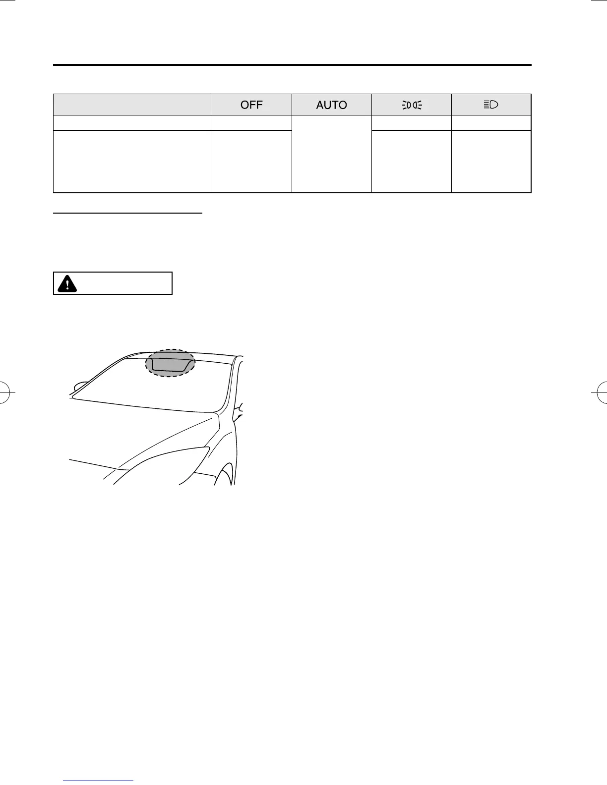 Ø Do not shade the light sensor by adhering a sticker or a label on the windshield.