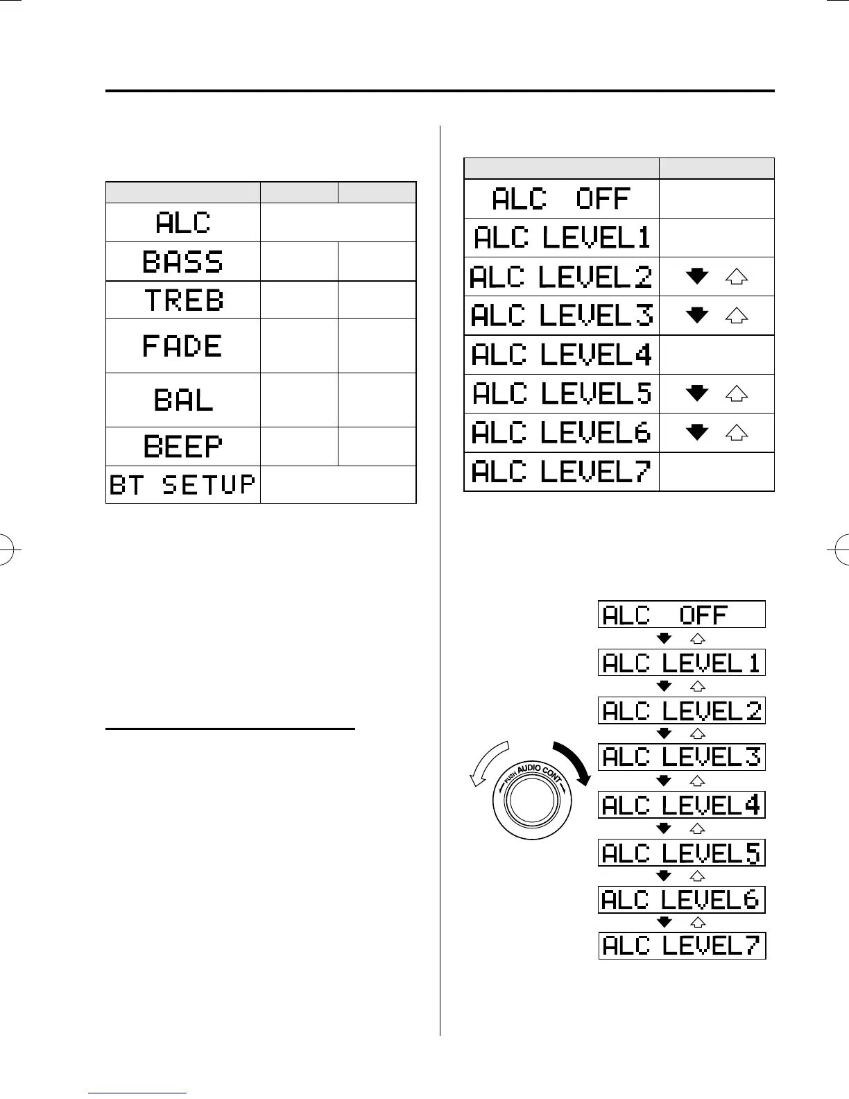 Turn the audio control dial to select ALC