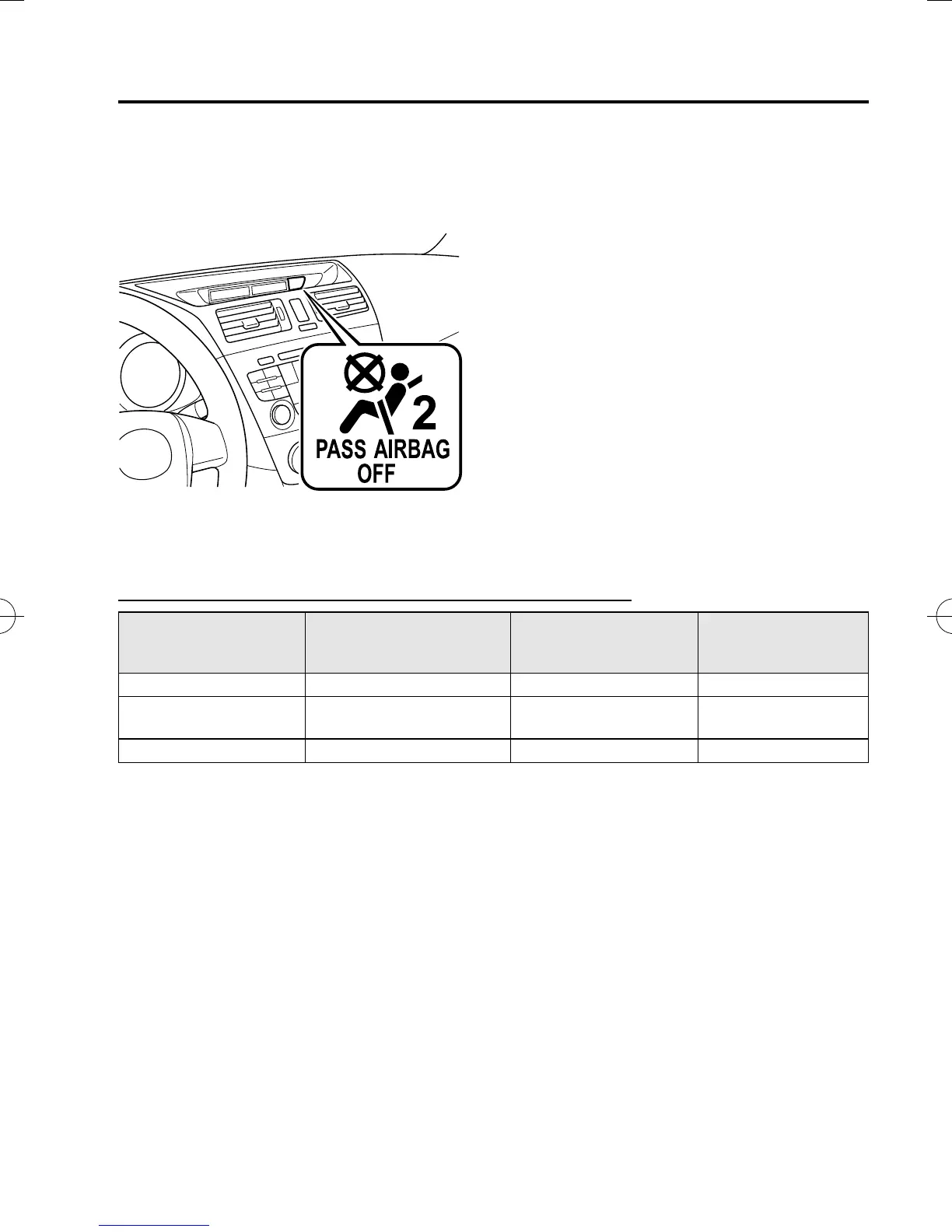 deactivation indicator light on/off condition chart, do not allow a child to sit in the front