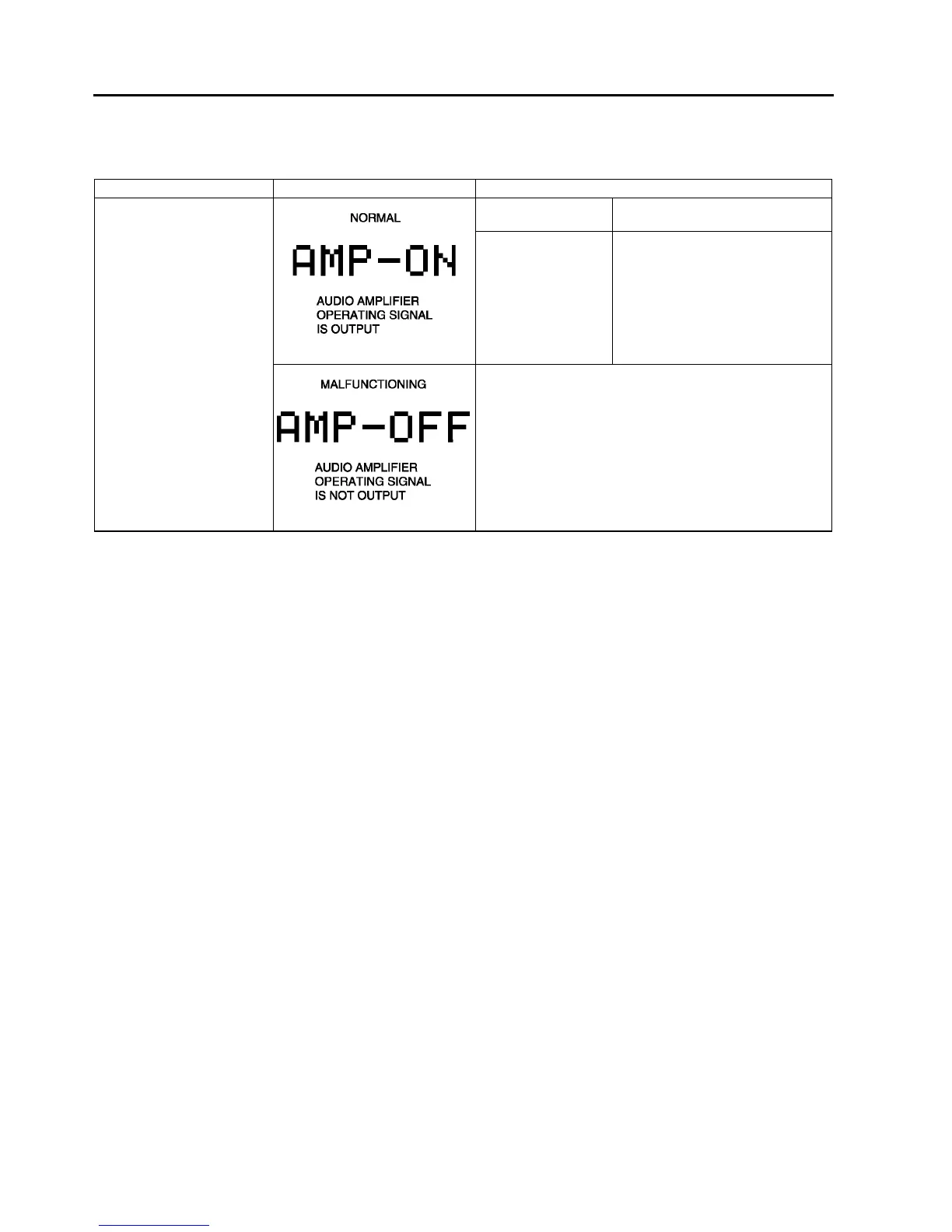 2. Inspect the audio amplifier (external) according to the following table: