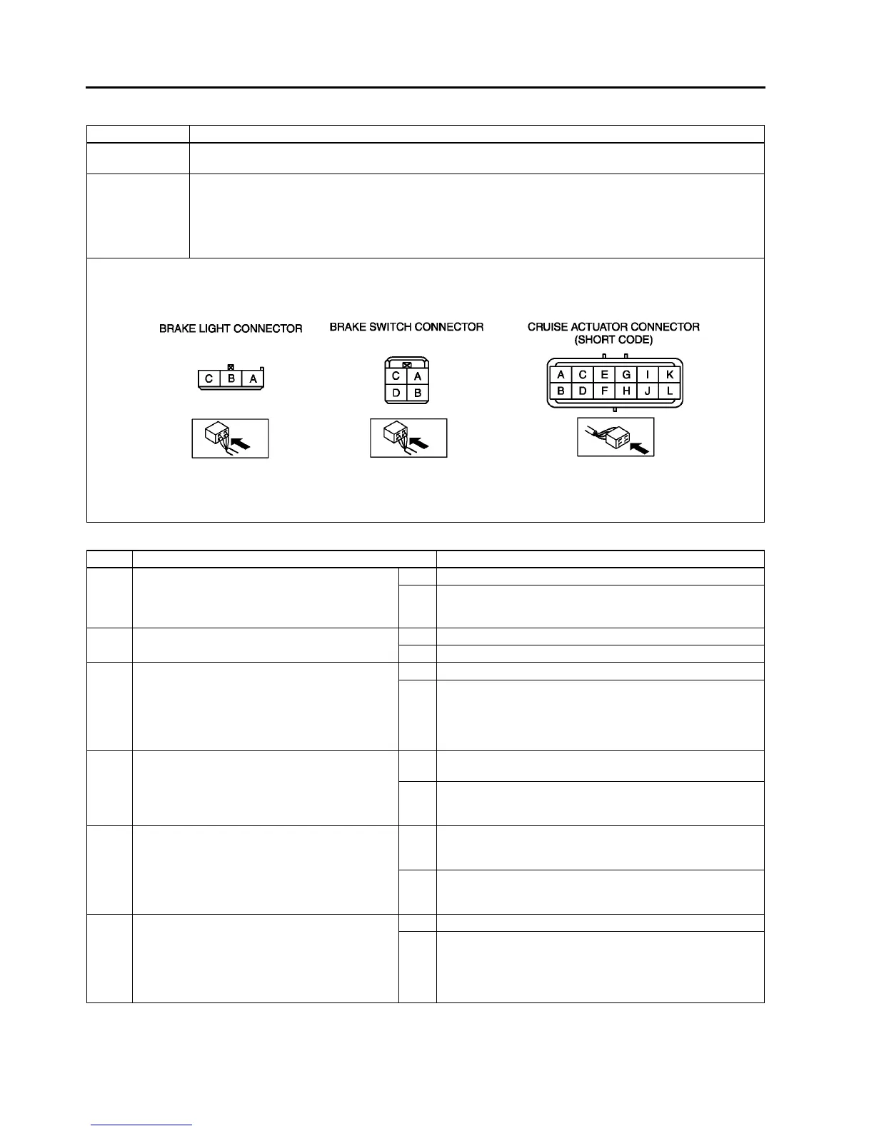 • Open circuit in wiring harness between brake switch and cruise actuator terminal C