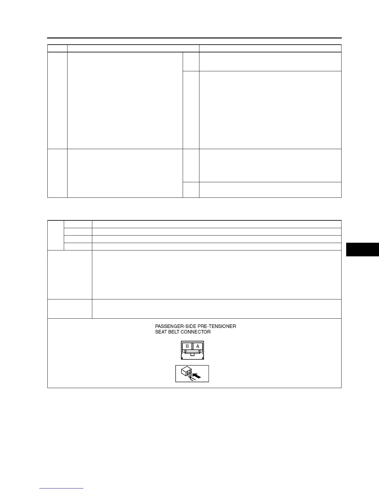 • Malfunction in wiring harness between passenger-side pre-tensioner seat belt and SAS unit