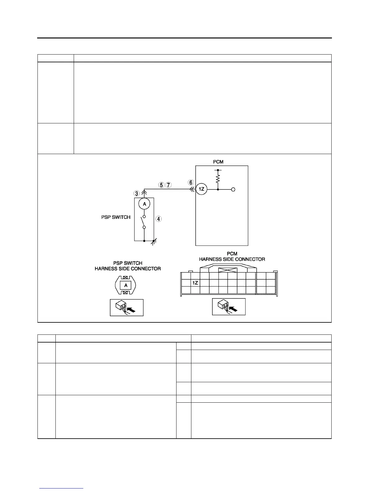 • Open circuit in wiring between PSP switch terminal and PCM terminal 1Z
