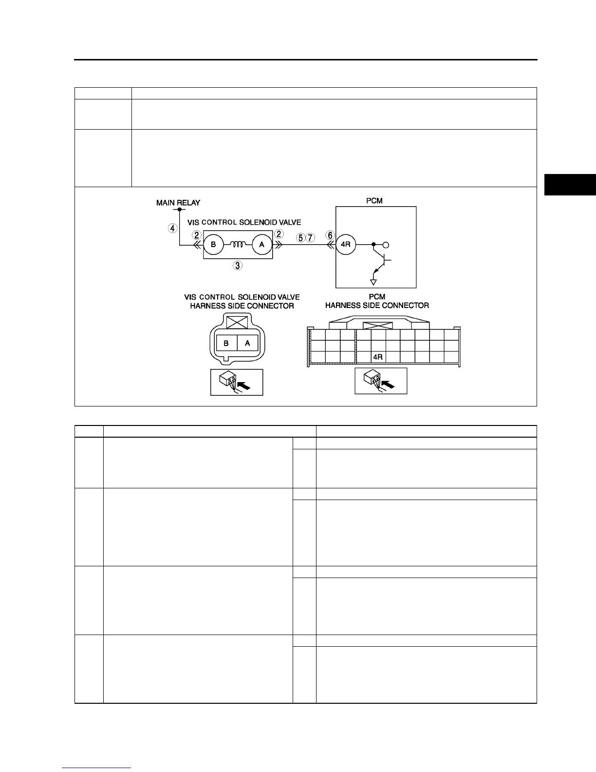 • PCM monitors VIS control solenoid valve control signal at PCM terminal 4R. If PCM turns VIS control