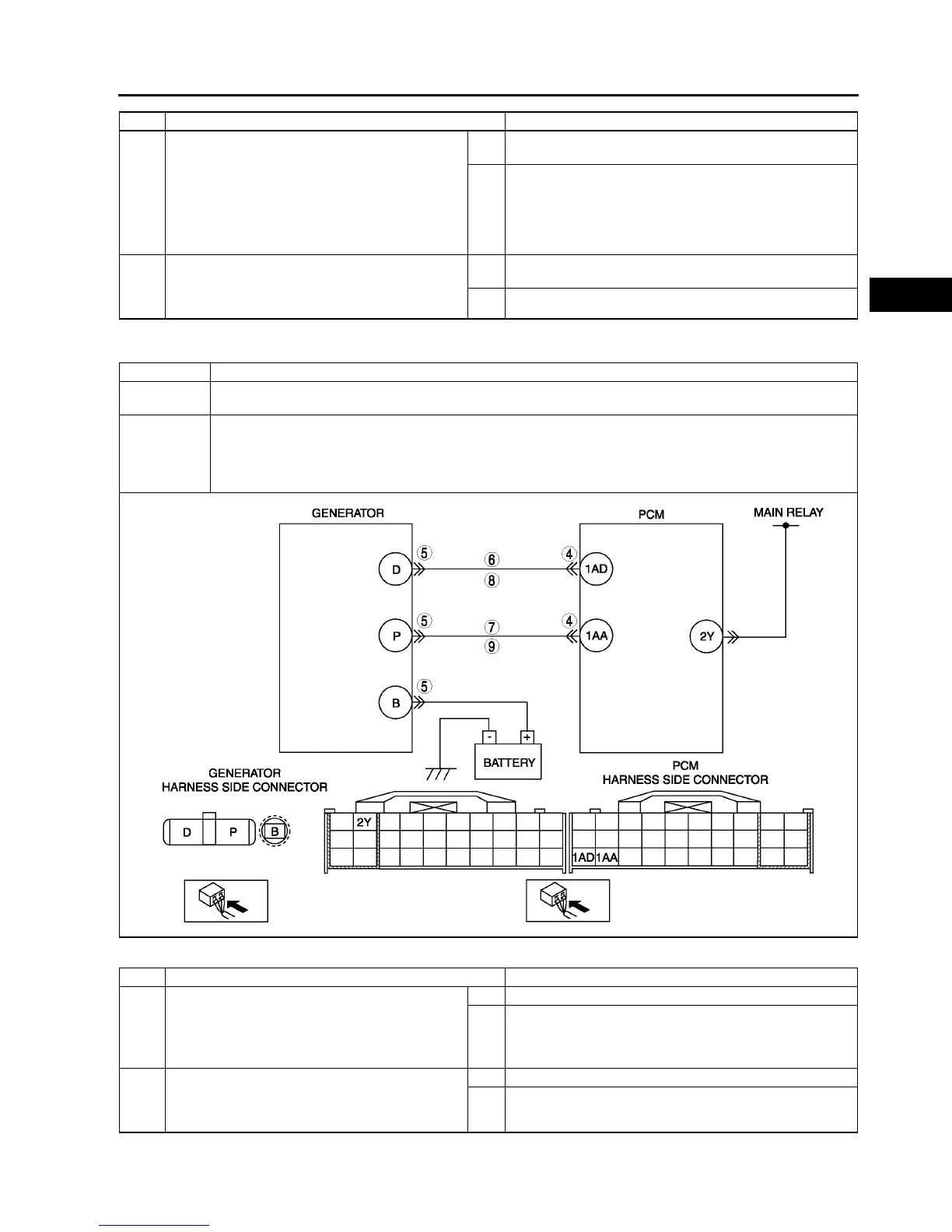 • Open and/or short to GND in wiring from between generator terminal P and PCM terminal 1AA