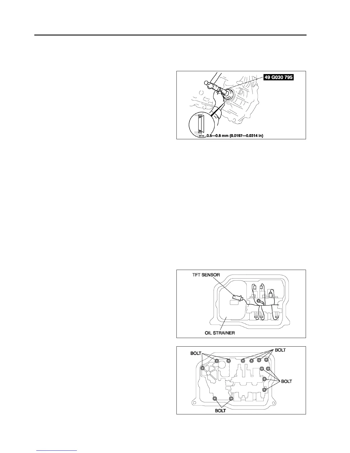 • If any old sealant gets into the transaxle during installation of the oil pan, trouble may occur in the