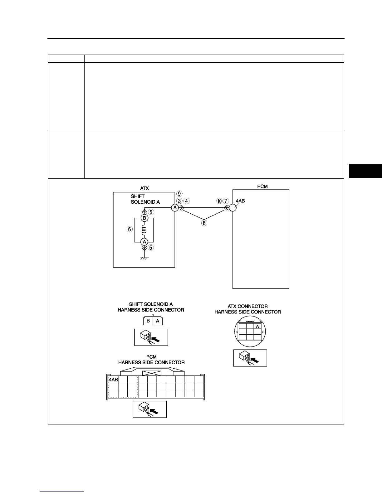 • Open circuit between shift solenoid A terminal B and ATX connector terminal A