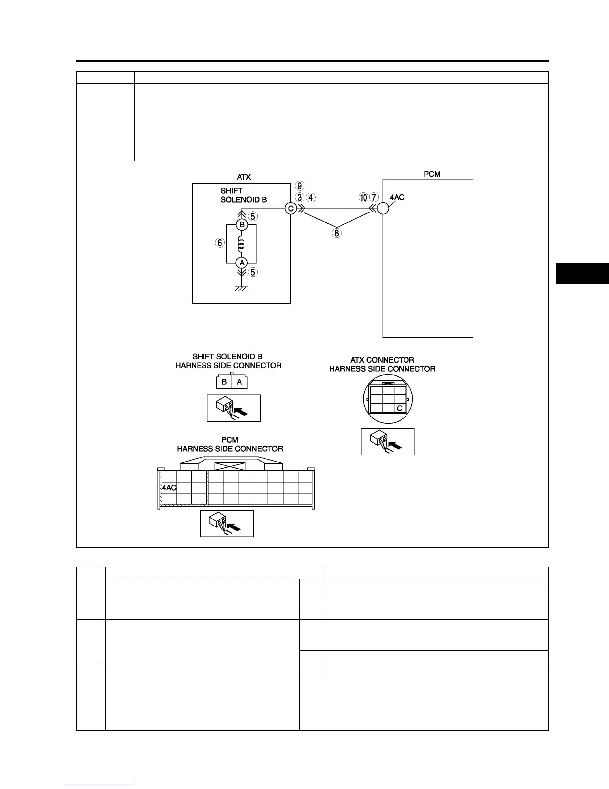 • Open circuit between shift solenoid B terminal B and ATX connector terminal C