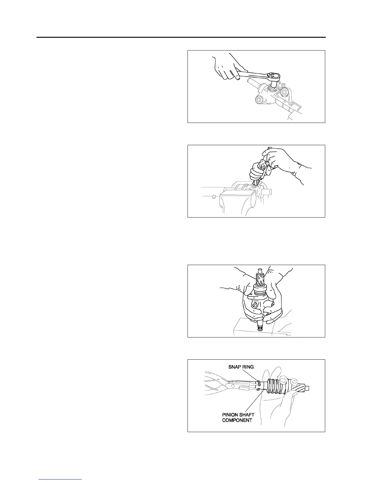 • If the pinion shaft does not come out easily, remove it using a press.