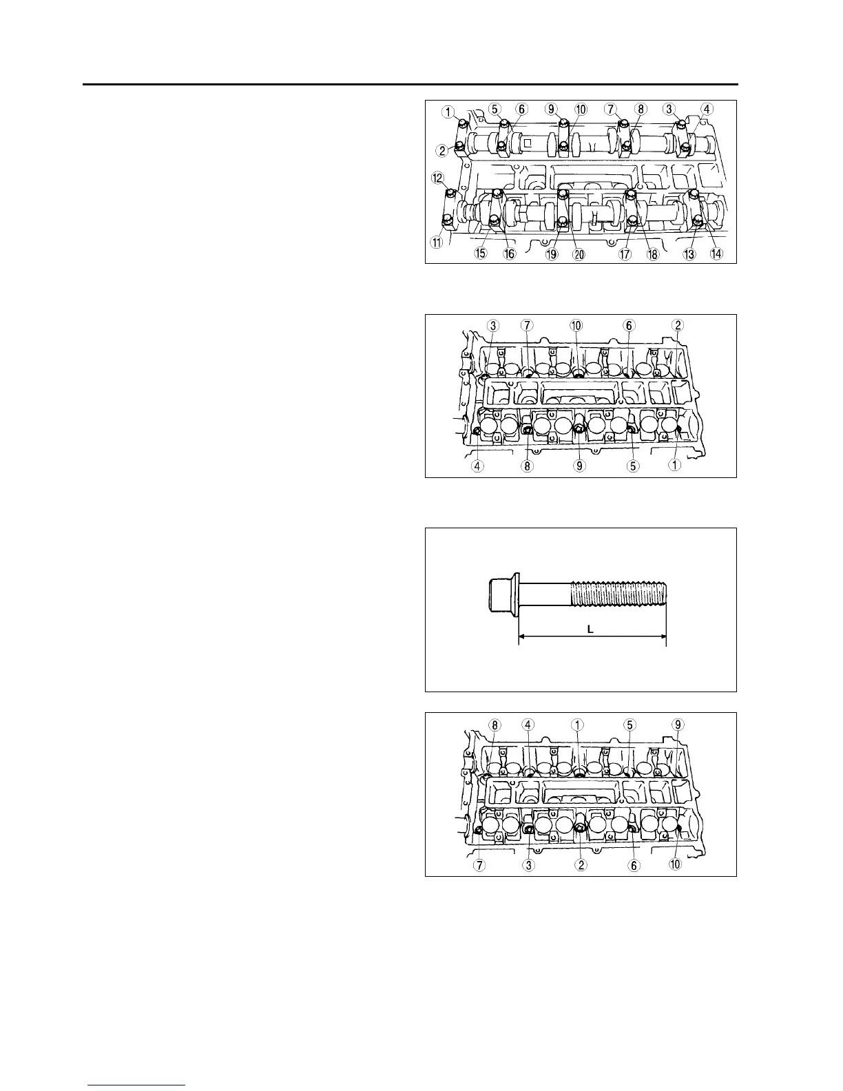 2. Tighten the cylinder head bolts in the order shown