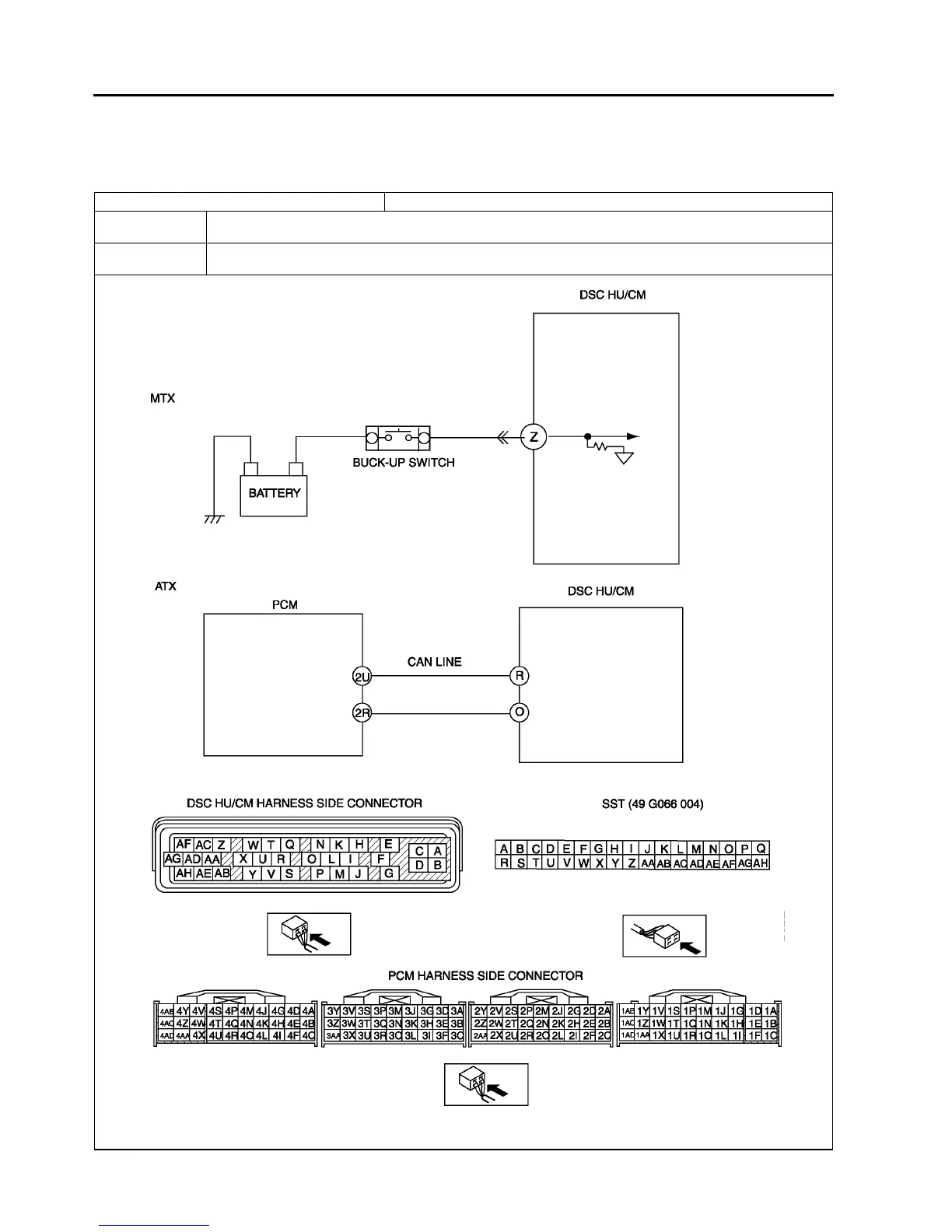 Short to power circuit in harness between DSC HU/CM terminal Z and back-up light switch (MTX)