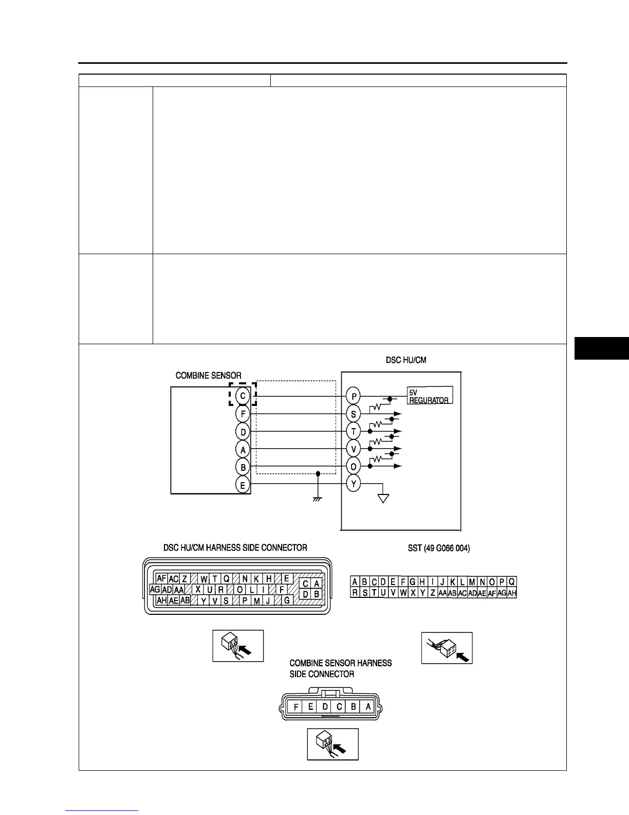 • Open circuit in harness between combine sensor terminal C and DSC HU/CM terminal P