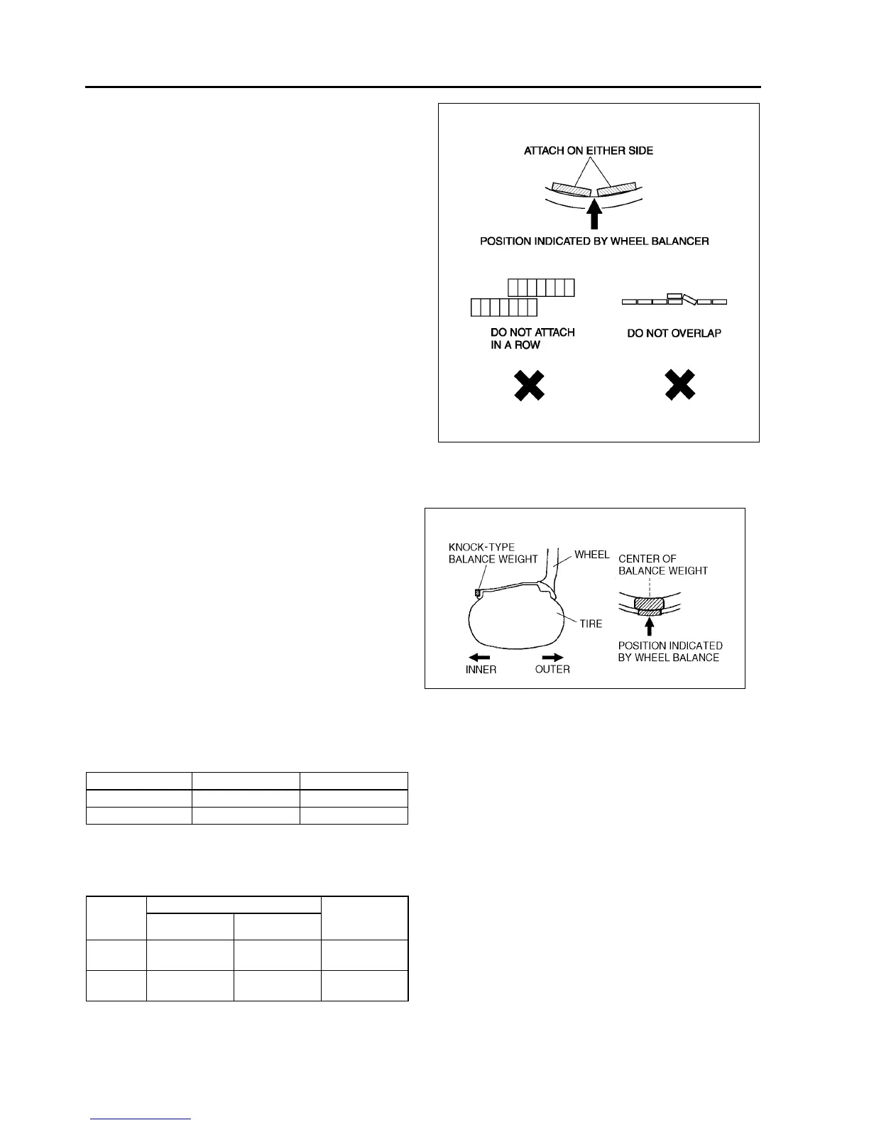• If the remaining unbalance exceeds 10 g {0.35 oz} (16 inch wheel) or 9g {0.32 oz} (17 inch wheel), perform