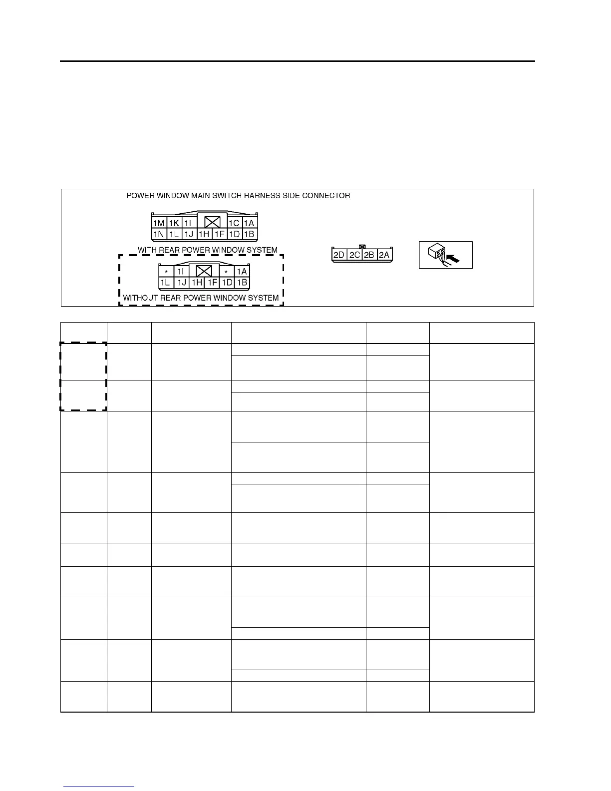 4. Disconnect the power window main switch connector before inspecting for continuity at terminals 1M (1J